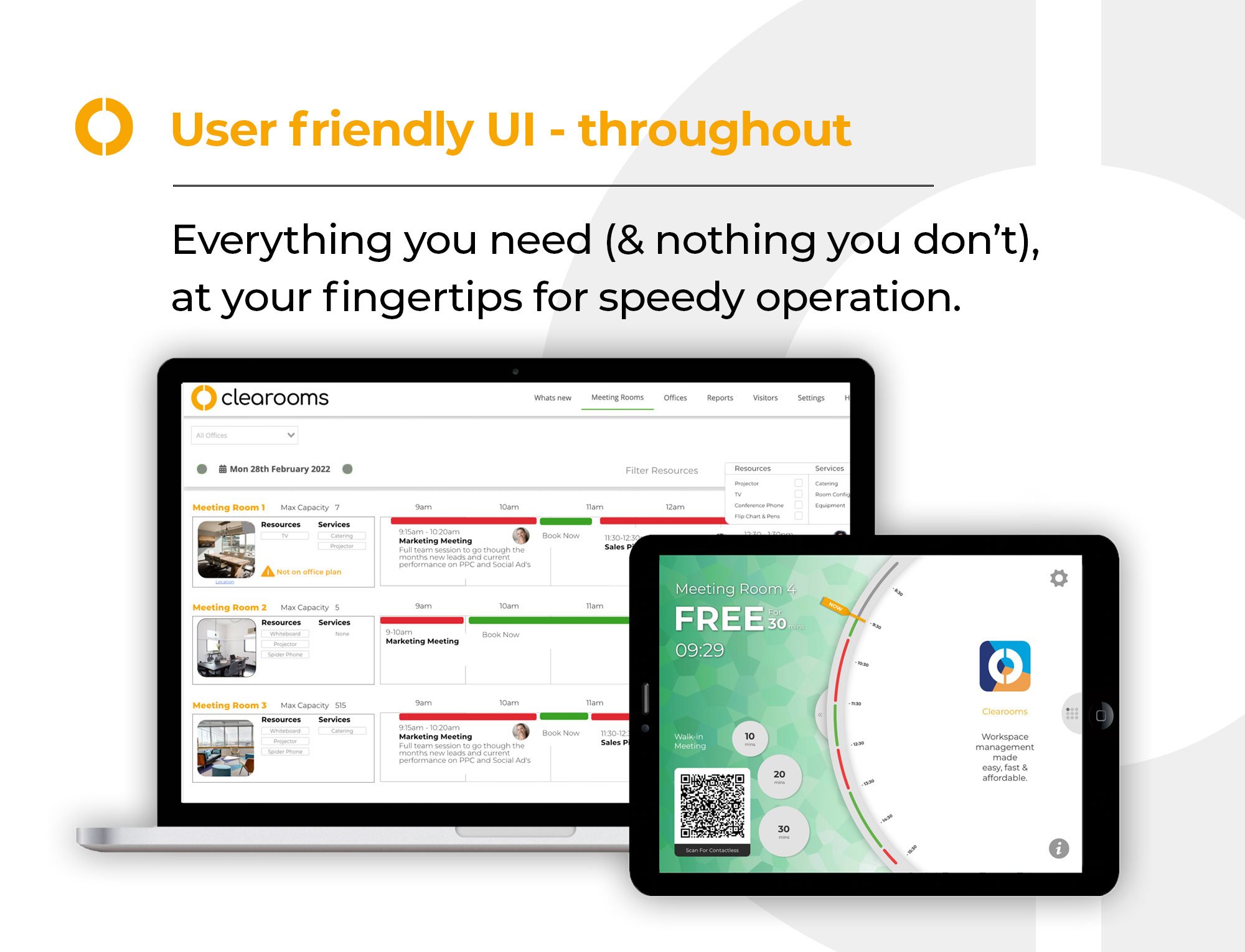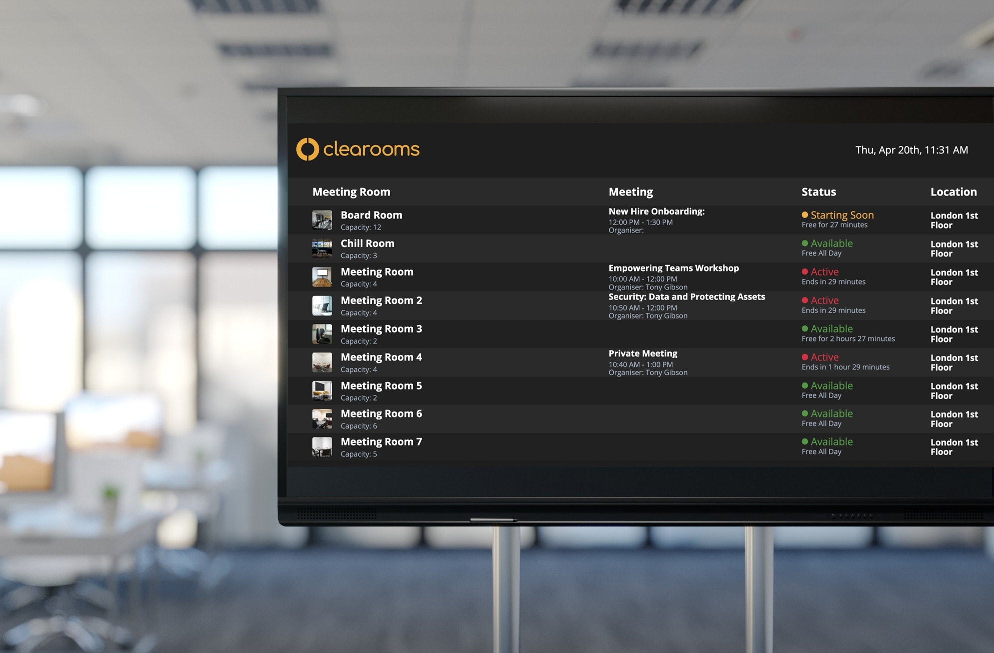 Setting up amazon fire tablets as meeting room availability displays did require a more involved process than i would like but we were supported by the Clearooms team who helped us sort it out quickly. It would have been very straight forward if we had a pure android or apple tablet for the purpose. Review collected by and hosted on G2.com.