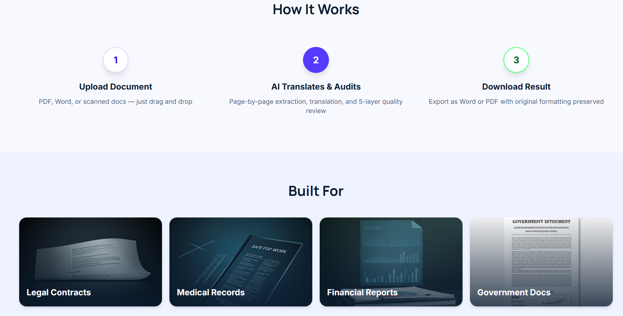 - Document Translation: Supports translation of various document formats, including Word and PDF files.