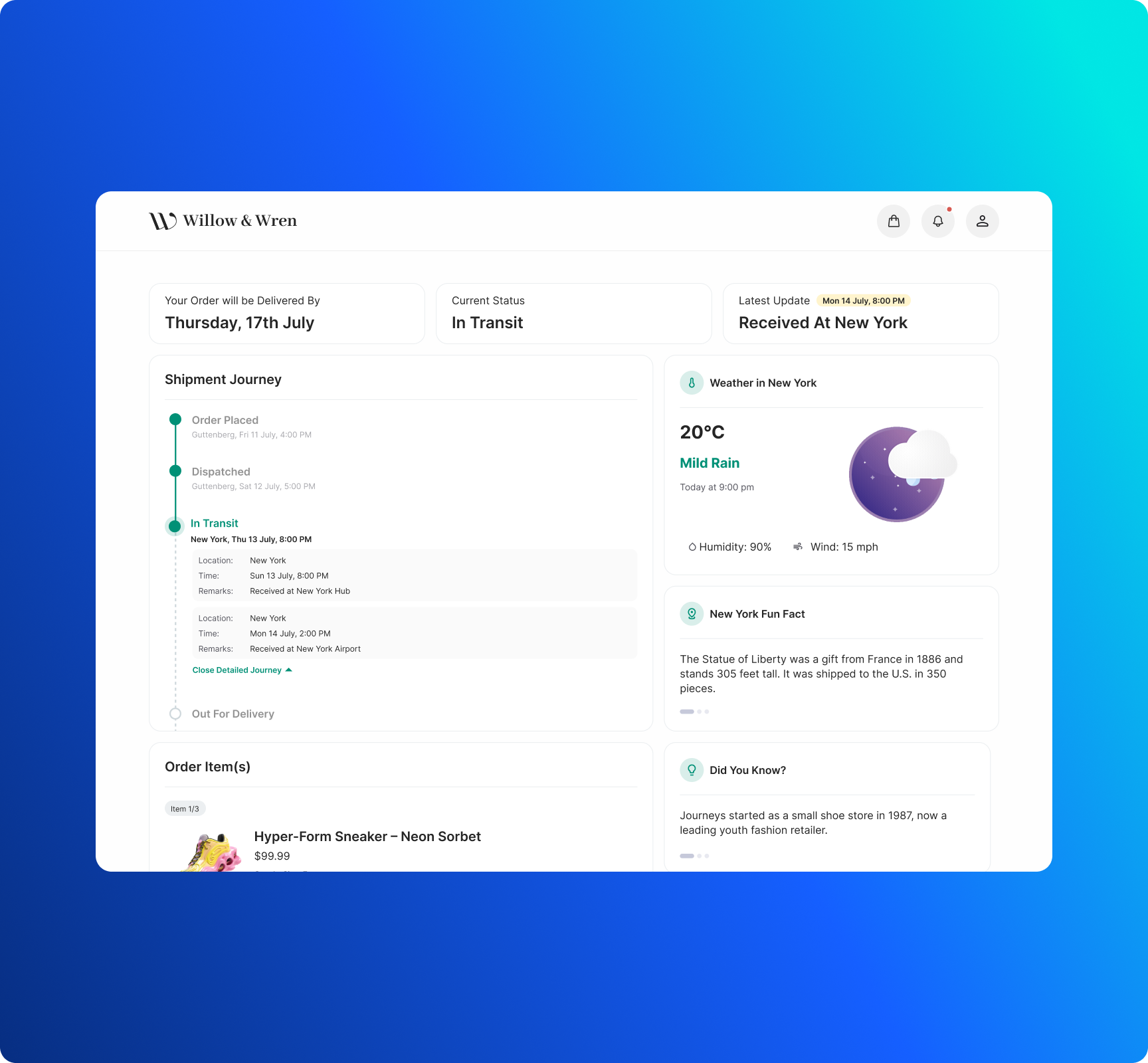 ease of use and seamless integration. It provides end-to-end post-order visibility with real-time tracking, proactive notifications, and centralized order management, enabling faster decisions, better operational control, and reduced customer support effort. Review collected by and hosted on G2.com.