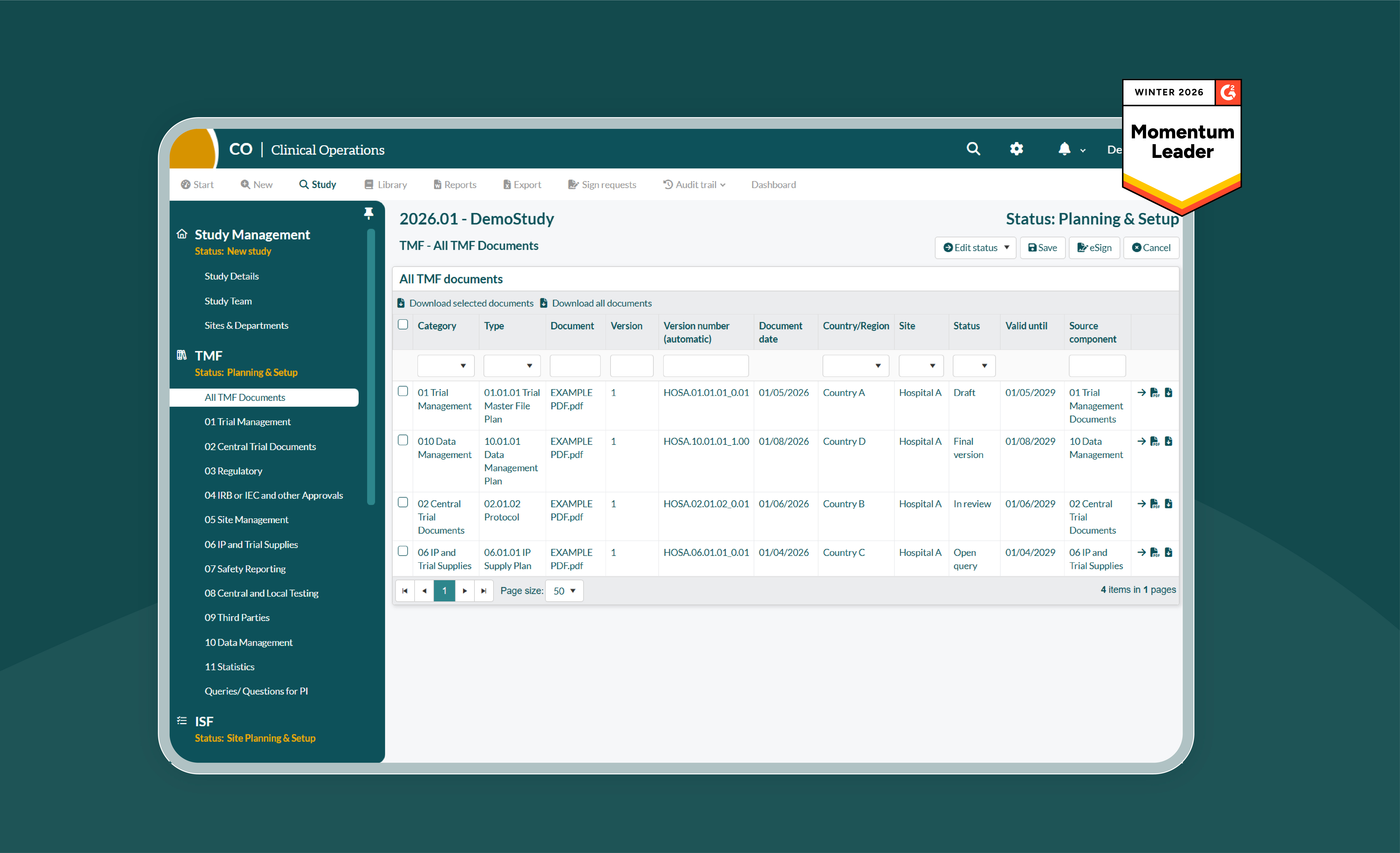 • Electronic Trial Master File (eTMF)