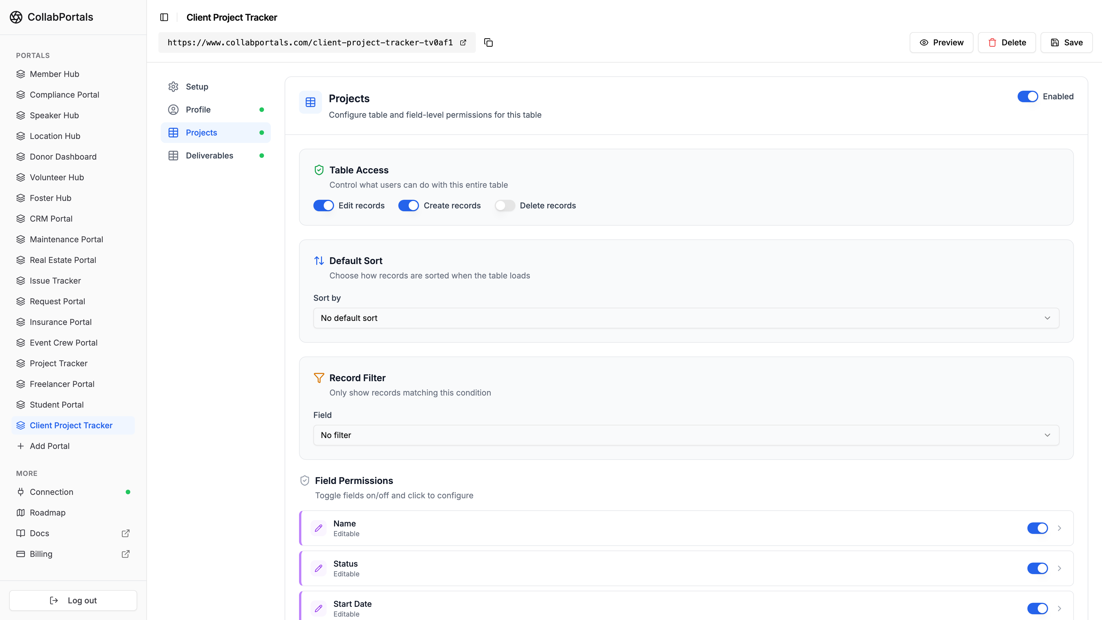 CollabPortals is a powerful platform that’s also very simple to use. I especially appreciate the level of granularity it offers. For my purposes, I needed a setup where individuals could enter certain data while other information stayed view-only (or even hidden), and I also needed the flexibility to adjust those settings from time to time. CollabPortals makes that easy with a straightforward toggle option.