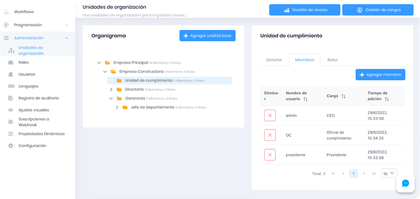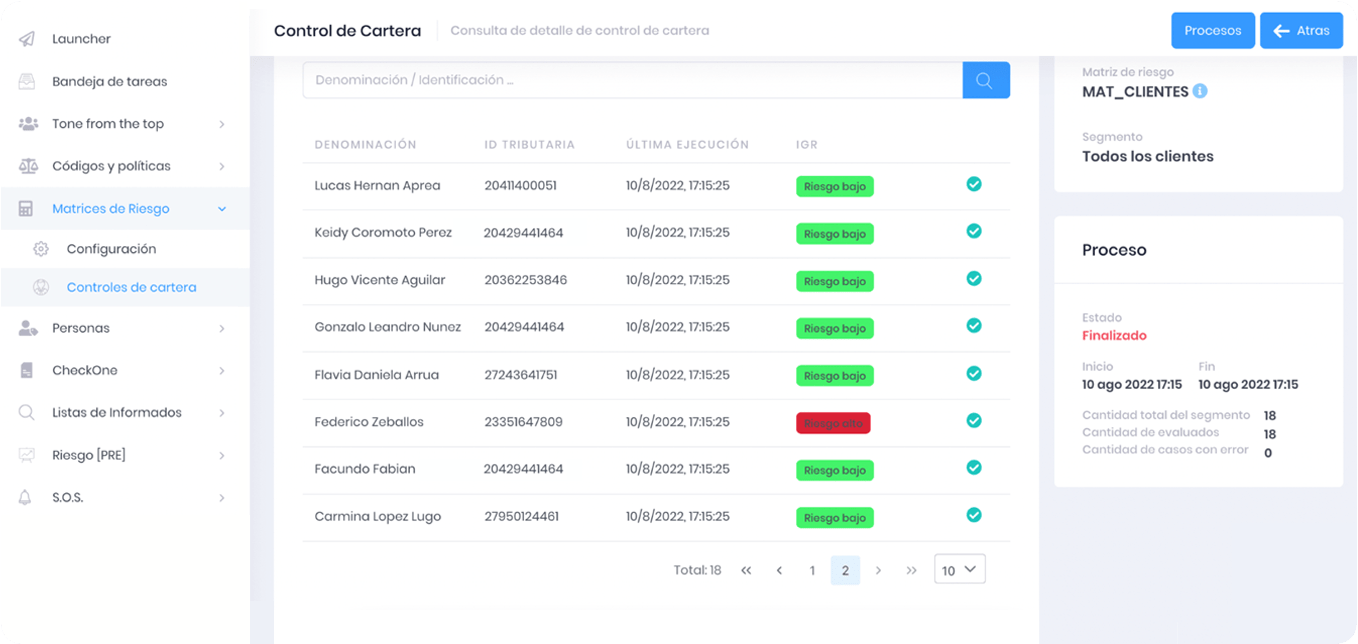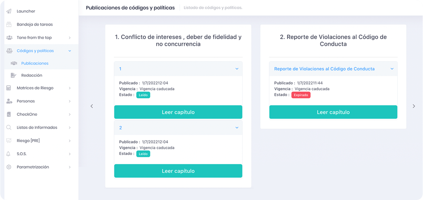 Learn about the key features of Compliance One; Software as a service (100% Cloud platform. Avoid maintenance costs of a local infrastructure.), Integration (all the applications work in an integrated way and allow the automation of processes.), Intuitive interface (completely intuitive navigation and user experience.), API (All applications allow connection via REST API interface.), Immediacy (service activation is automatic. Start trading immediately from any browser.), Modular (it has a 360° vision or enables only the benefits that meet the regulatory requirements of your organization.), Knowledge base (it has detailed documentation and interactive videos on each functionality.), Reports & traceability (Certify and audit compliance with reports, user activity logs, alerts, and treatments.)