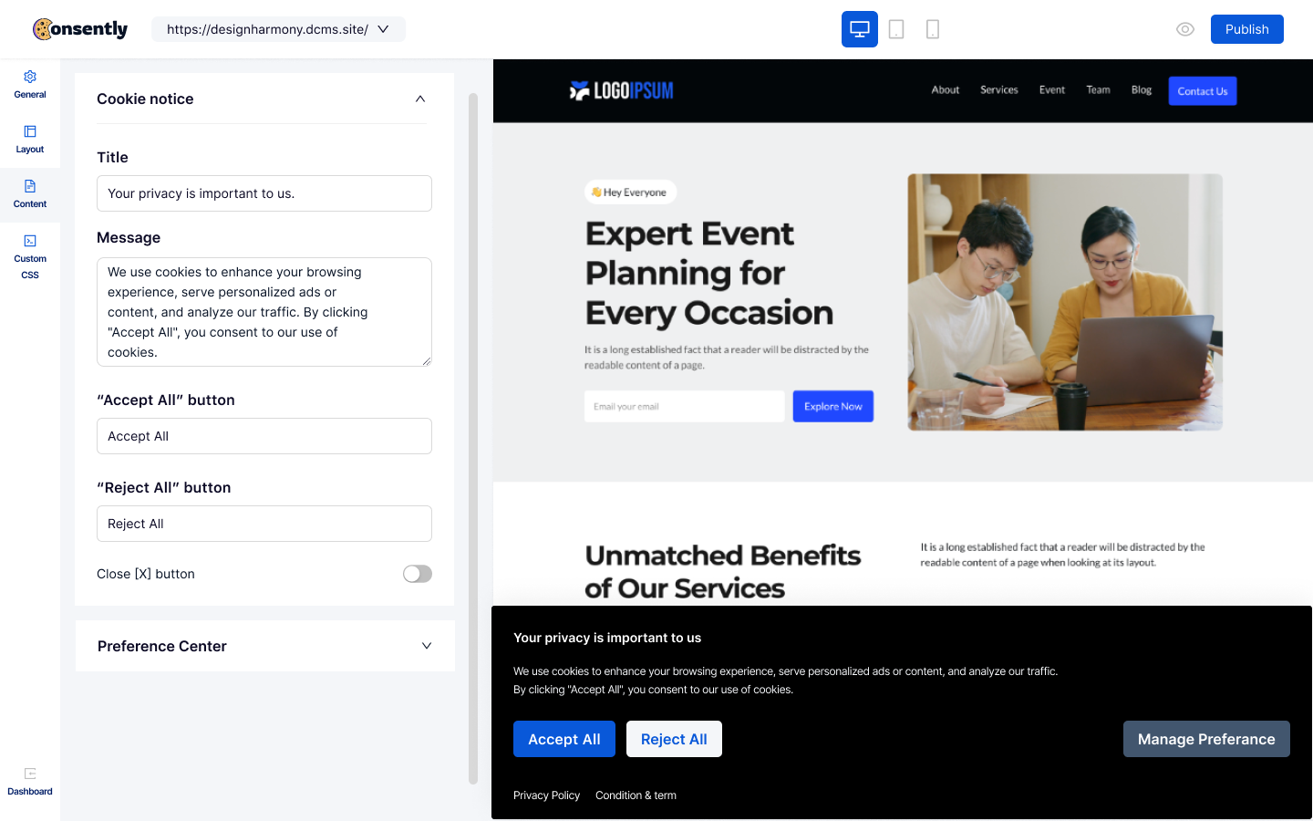 CookieYes is a cloud-based cookie consent solution for websites to comply with the General Data Protection Regulation (GDPR) and ePrivacy Directive (ePD). Data privacy laws like GDPR and ePD mandate that if you use cookies, you must: