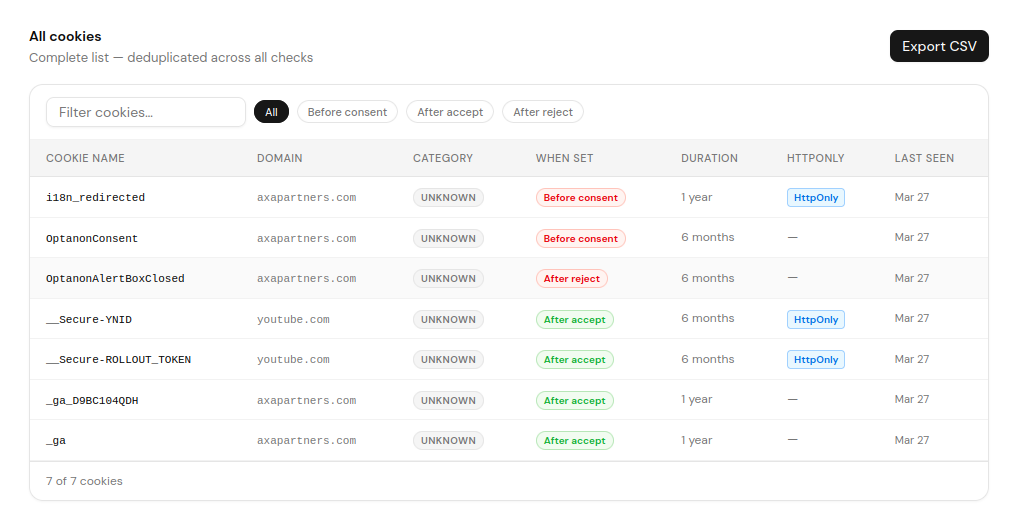 Unlike traditional scanners or CMP self-validation, Consent Checker simulates genuine user interactions (Accept, Reject, and GPC) inside a live browser session to expose what cookies, pixels, and tracking technologies actually fire before and after consent on any website, in any U.S. state.