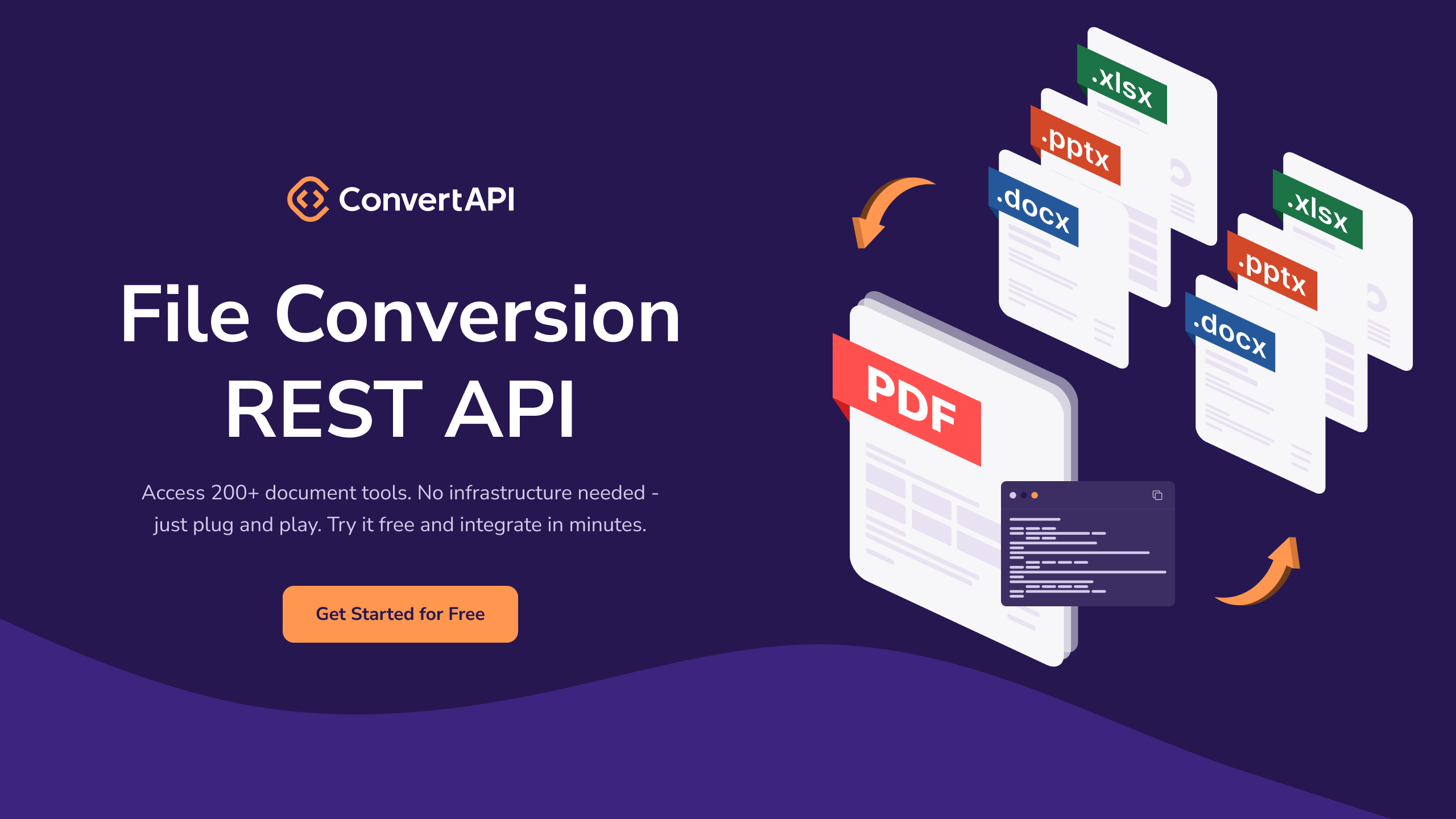 ConvertAPI helps you automate document workflows with a powerful REST API that converts Word, Excel, PowerPoint, HTML, PDF, and over 500+ file formats in seconds.