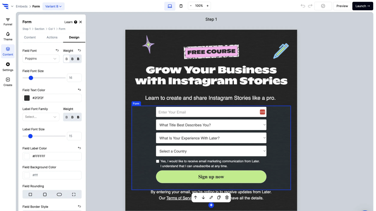 • Generate landing pages quickly using AI to remix 100+ landing page templates