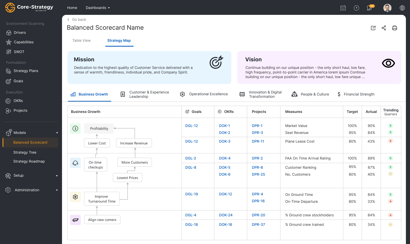 Additionally, Core-Strategy enhances collaboration among teams by providing a unified platform where stakeholders can access shared data and insights. This fosters a culture of transparency and accountability, as all team members can align their efforts towards common goals. The result is a more cohesive approach to performance management, where organizations can track progress and make necessary adjustments in real time, ultimately driving sustainable growth.