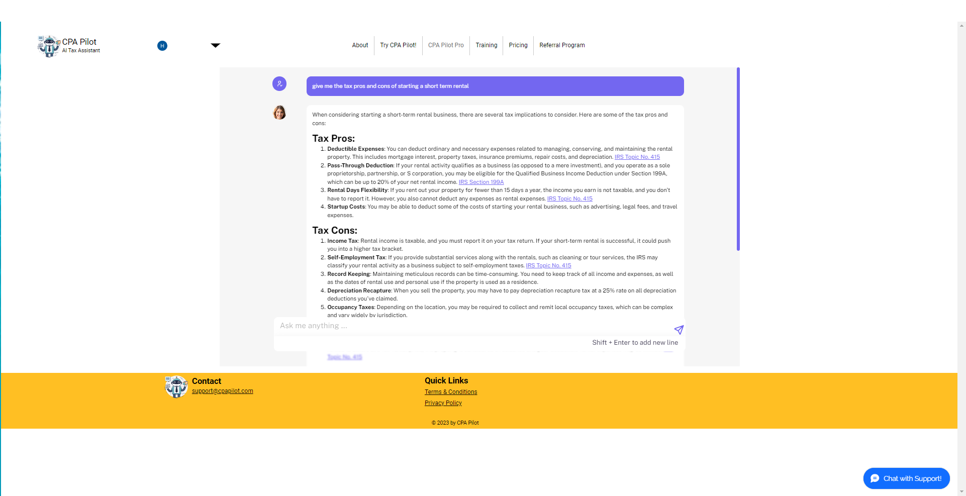 The best thing I can say about CPA Pilot is I have not used any of my other tax research software since I signed up for CPA Pilot. I get fast, accurate answers with links to IRS and state source documents to verify the answer. Review collected by and hosted on G2.com.