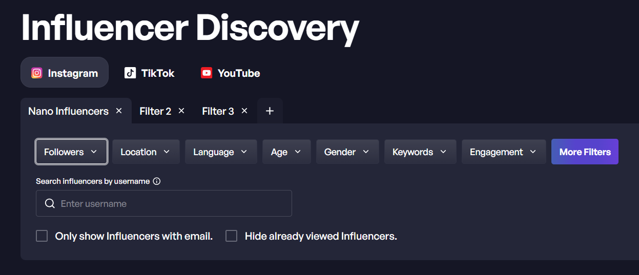 Find quality niche influencers thanks to the keyword and location search. Narrow down your results based on your key performance metrics such as following count or engagement rate. And you're good to go!