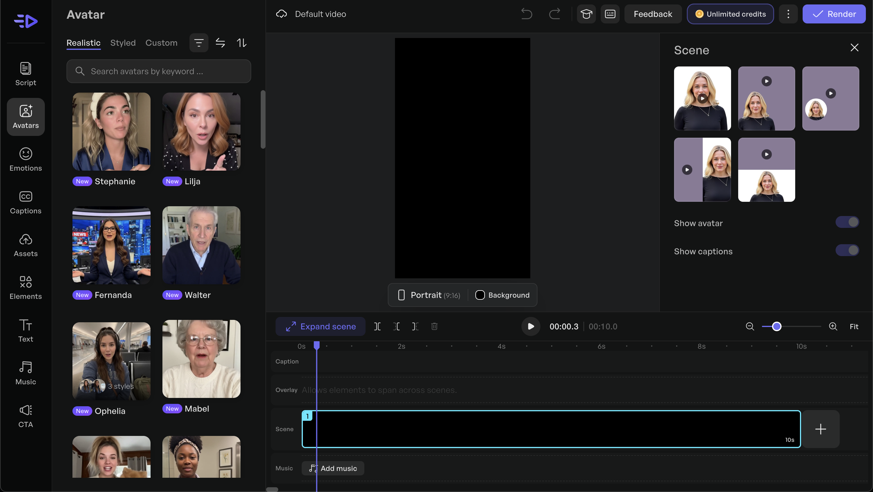 Turn static images into dynamic videos with customizable scenes and avatars.