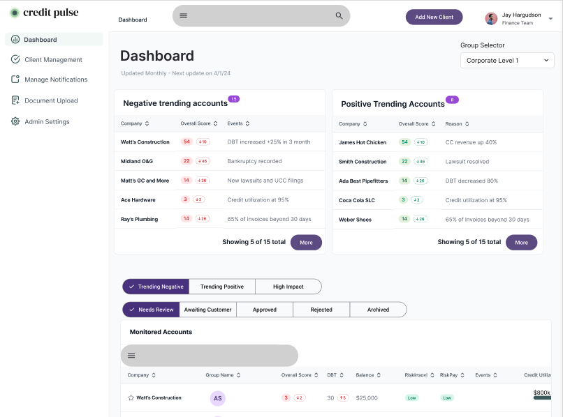 Credit Pulse has been a huge help in our turnaround time on processing credit applications. Previously, manual checks were highly time-consuming. It has completely streamlined our process. The recommended credit line has been a great feature, and we feel much better about our credit decisions. We've also started getting alerts about current customers that help us feel more up to date on potential risk factors. All in all they've been a great partner so far and we highly recommend their product. Review collected by and hosted on G2.com.
