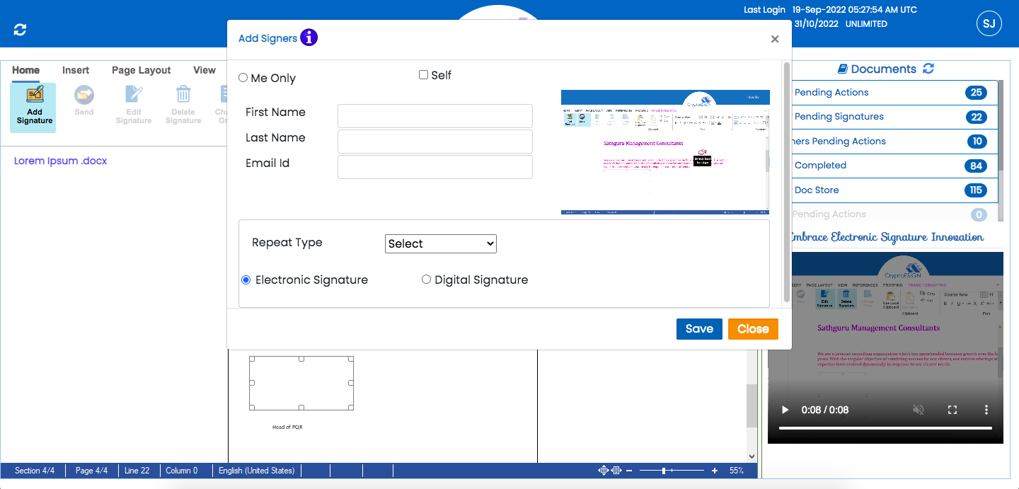 The beauty of this software is that it is word inspired and single screen interface. You can sign the document anywhere from the globe irrespective of place and time using mobile , tab and pc looping N numbers of signatories, it is integrated with ChatGPT where you can create your own templates. CryptoEsign has a options called annotations where the signatory can suggest changes to the initiator , if he wants to make any changes or comments to particular sentence or line in the document. Review collected by and hosted on G2.com.