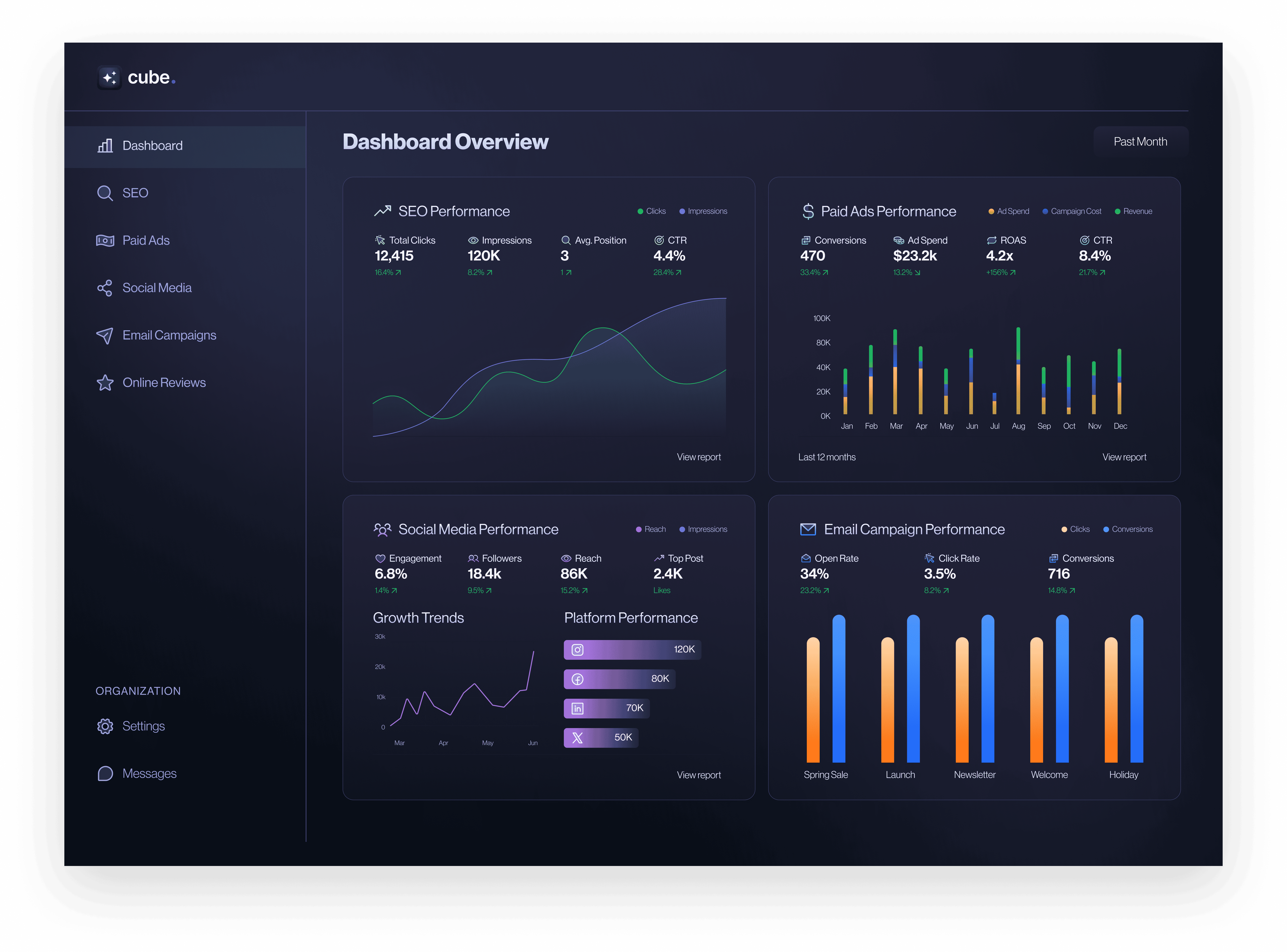Cube is more than just a tool. We are your growth partner. With Cube AI, you can easily manage reviews, improve SEO, grow on social media, send better emails, publish content, and run ads — all in one place.