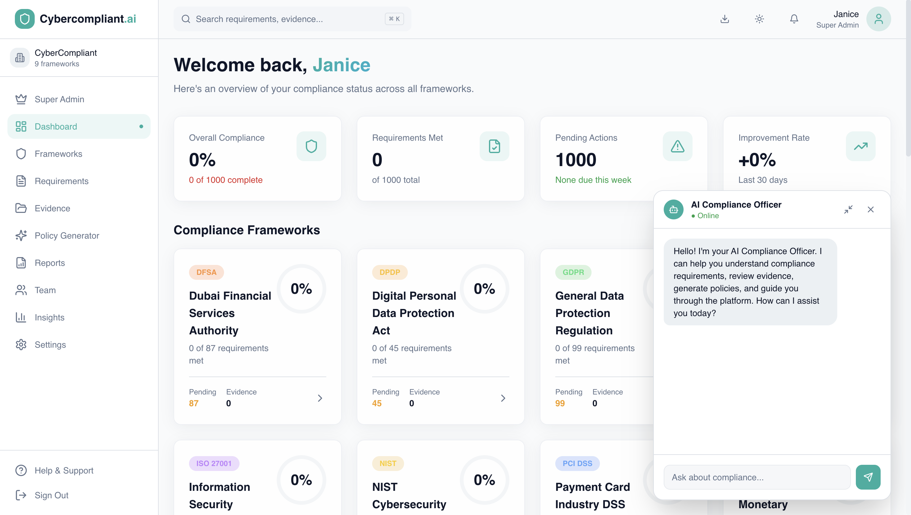 Ease of use in terms of viewing the frameworks requirements and uploading easily the required evidence. The AI review helped us quickly flag evidences that needed to be improved, and the policy generator saved us time by quickly generating the required policies Review collected by and hosted on G2.com.
