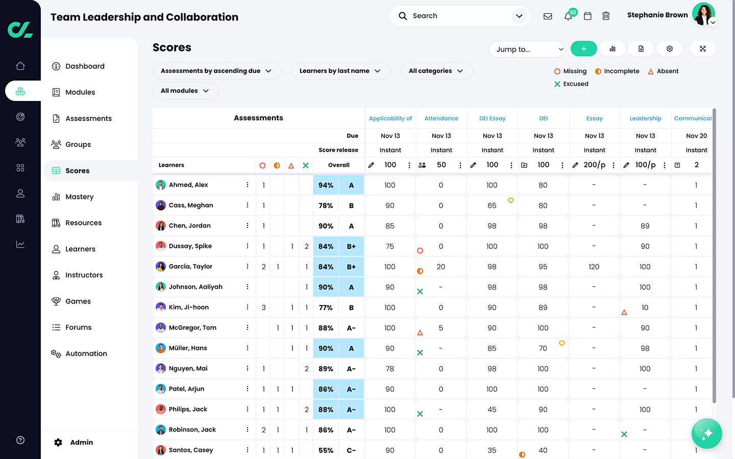 Make better decisions about learning programs or curriculum with easy to understand data and analytics. Get an end-to-end view of your learner’s experience to see progress and performance. Demonstrate learning ROI with skills competency and mastery.