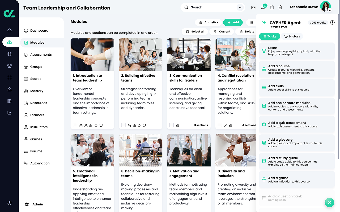 Build courses and classes quickly with CYPHER Agent. Increase user adoption across your business, school, or university.