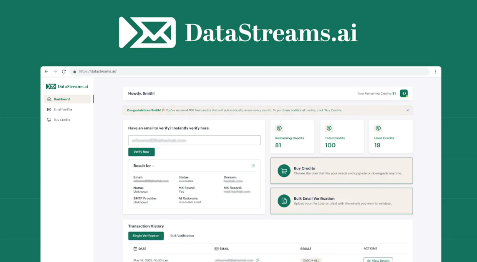 What I love most about DataStreams.ai is the accuracy. If the tool says an email is valid, it really is valid, I’d say it’s more than 98% precise. That reliability has made a huge difference in our campaigns.