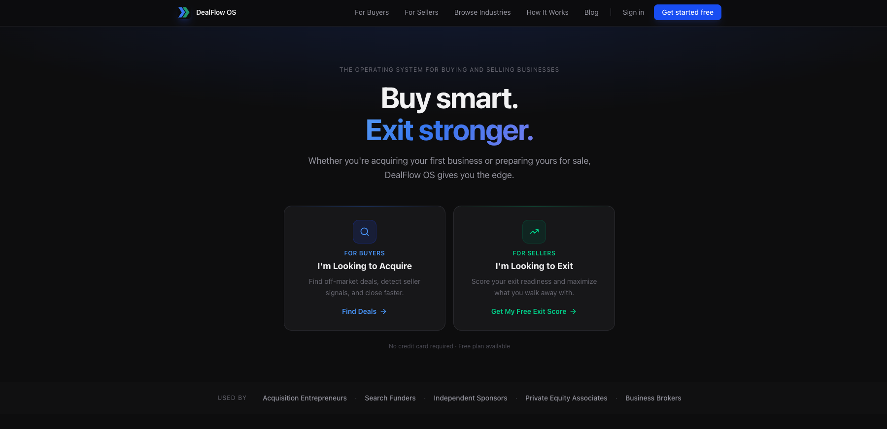 The operating system for acquiring small businesses — deal sourcing, AI CIM analysis, pipeline management, and SBA loan calculators in one platform.