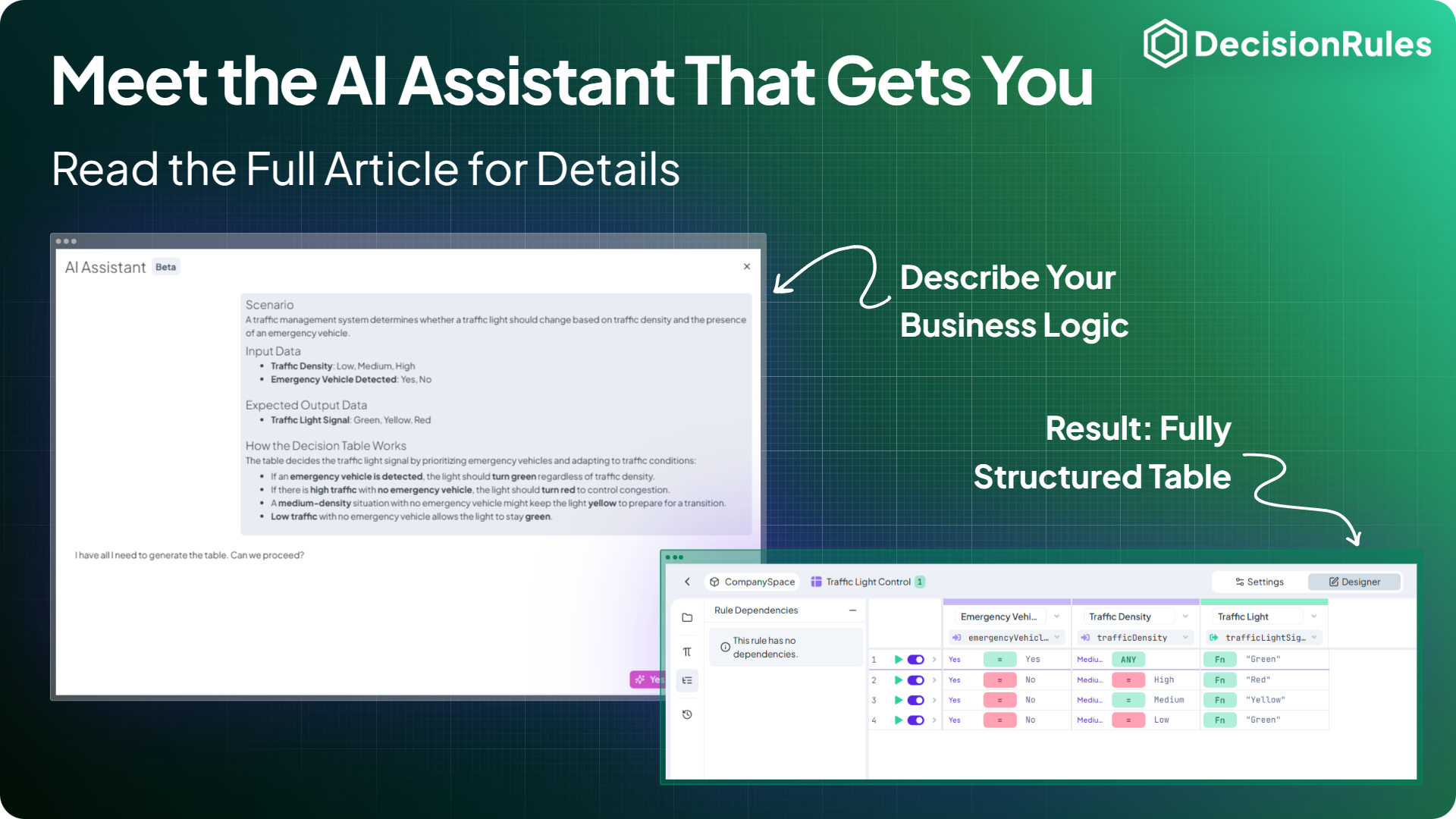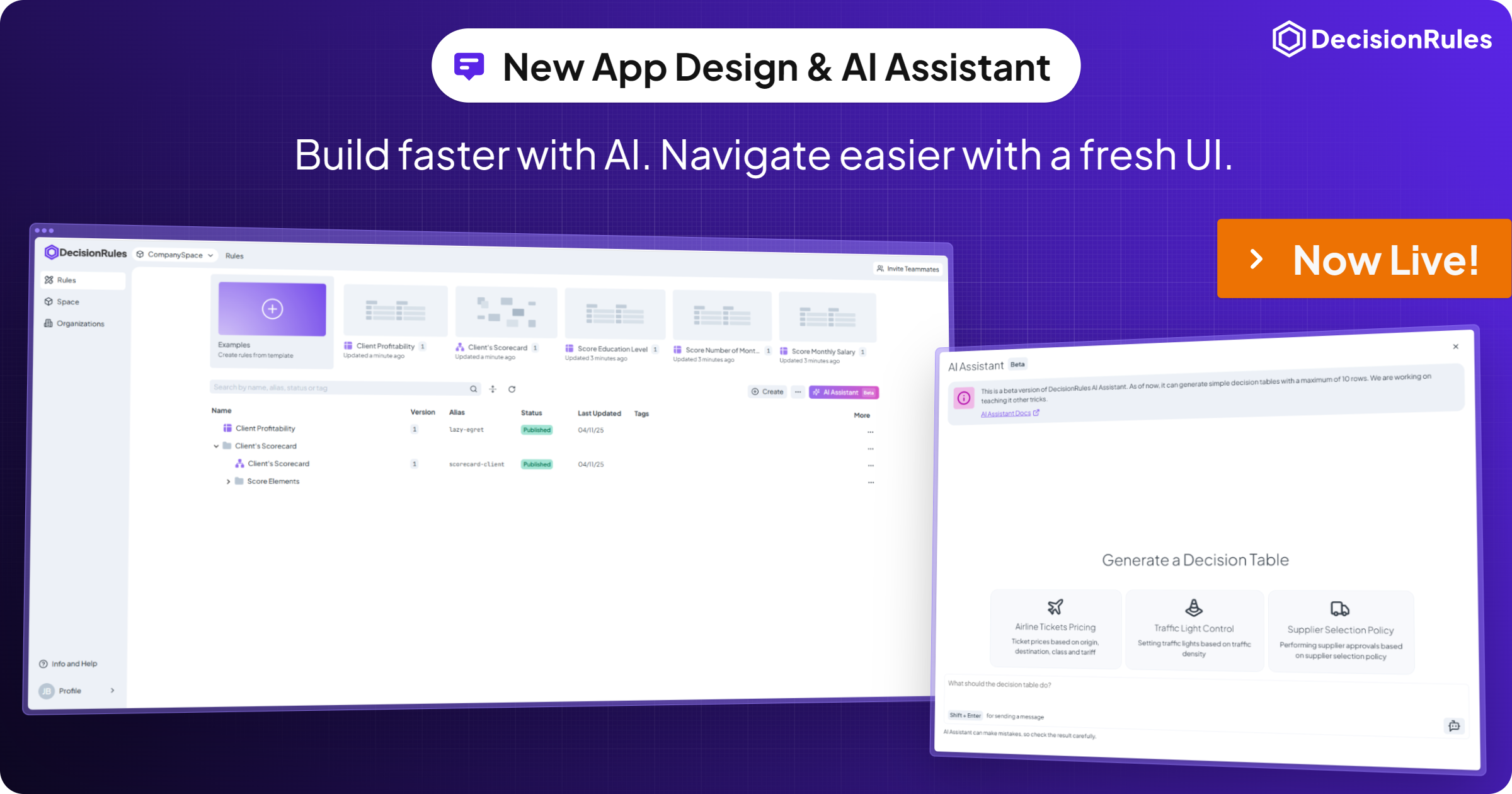 DecisionRules is a no-code/low-code Business Rules Management System (BRMS) and rules engine that enables business teams and developers to create, deploy, and manage decision logic independently—without lengthy IT projects.