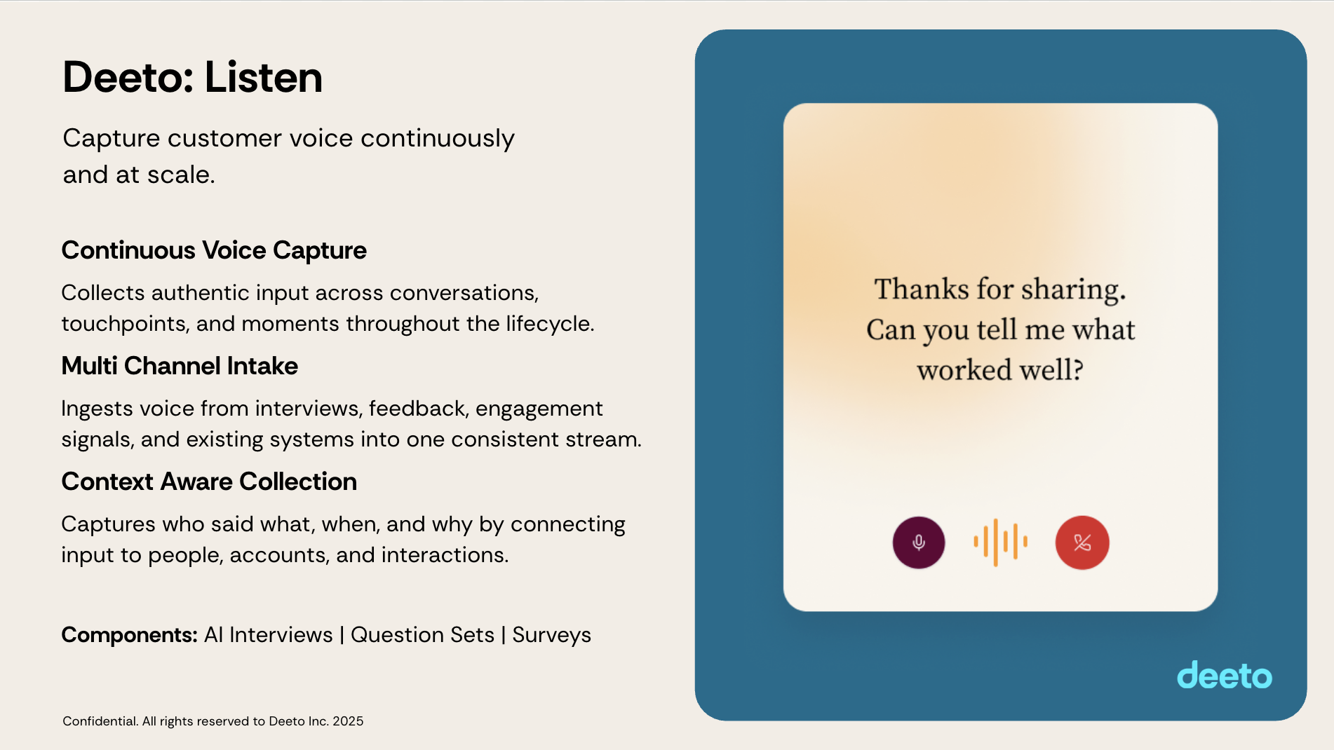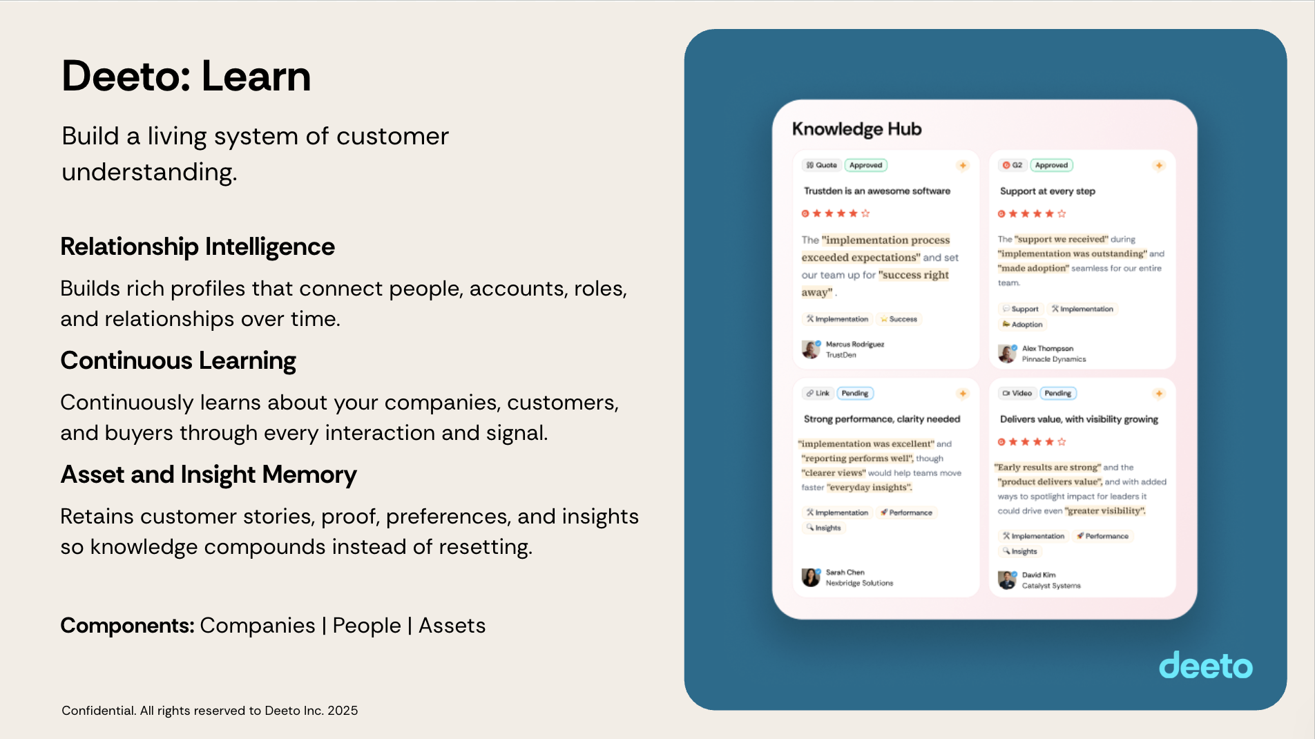 Deeto makes it easy to collect, manage, and reuse authentic customer stories for sales and advocacy. The platform streamlines the process of turning customer feedback into usable content, which saves time and helps keep messaging consistent across teams. Review collected by and hosted on G2.com.