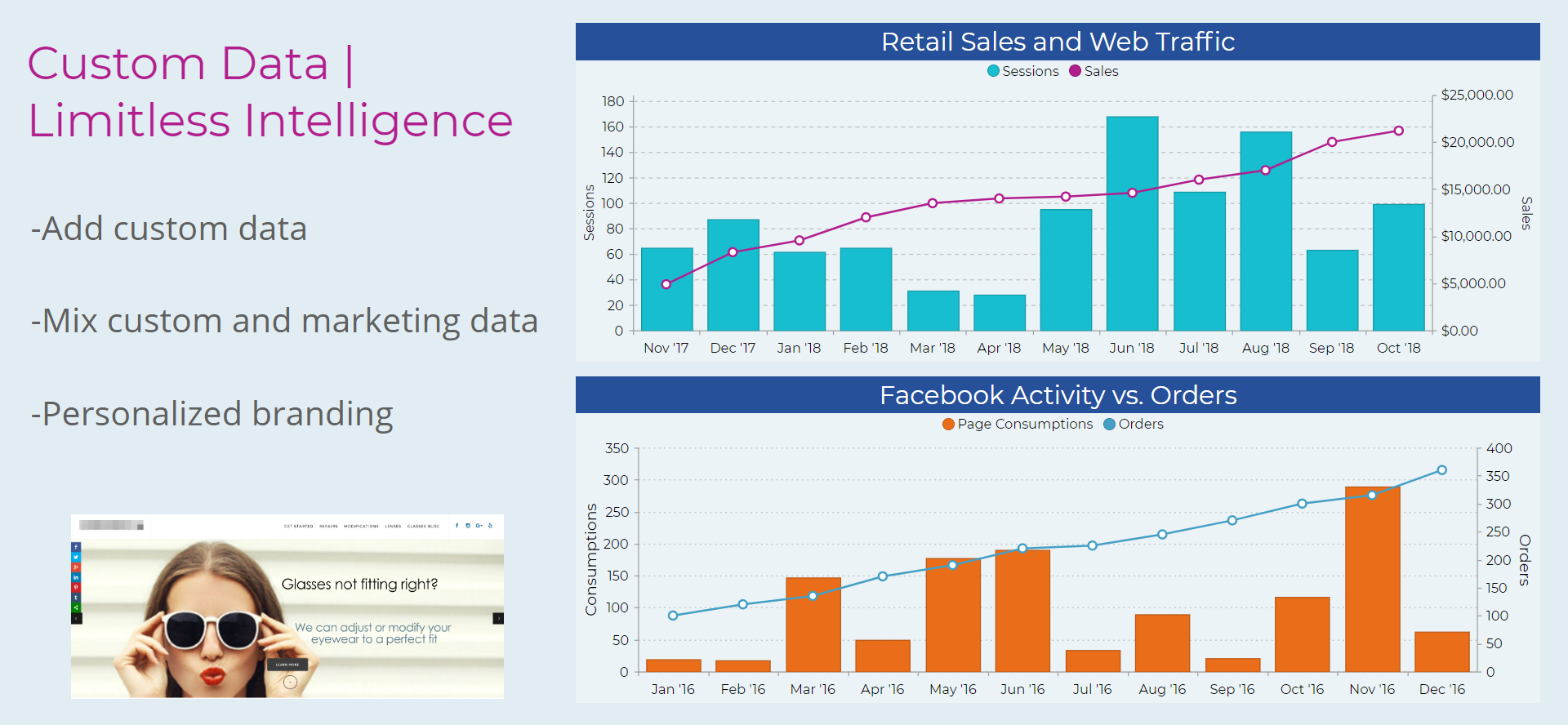Because we offer multiple services such as website development and search engine optimization as well as internet ads, we needed a reporting platform to drastically reduce the time spent generating multi-dimensional reports for clients; we needed client reports that could document our successes and also allow us to point out areas in need of improvement (for upselling). I was searching for an easy-to-use reporting platform that would allow us to incorporate statistics across platforms quickly and professionally, but none of the available platforms I found were comprehensive enough to include such a range of online assets at an affordable price point. Then I found Deftly and Deftly meets our needs with ease!