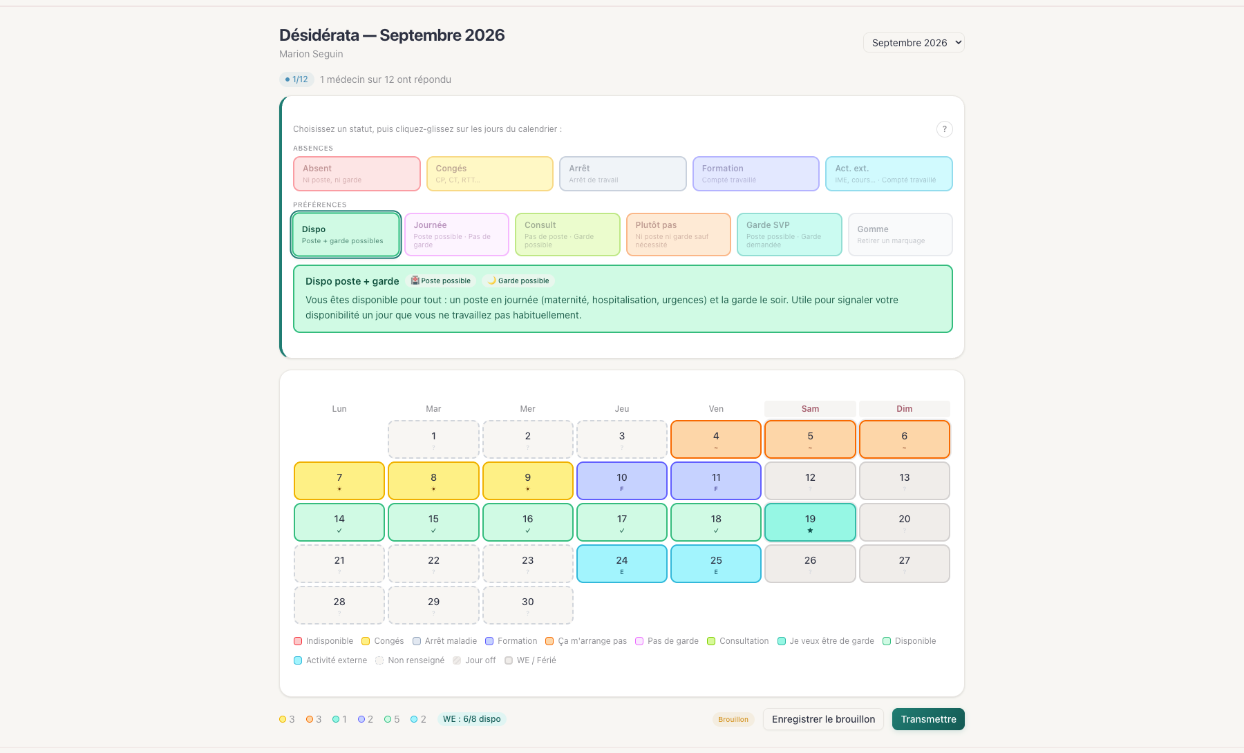 - Desiderata collection: each physician submits availability preferences (unavailable, prefer not, request on-call, training, leave) via a paint-style calendar
