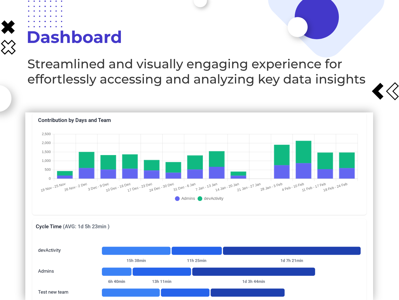 Dashboards allow users to configure views with notes, charts, lists and workflows to track tasks and manage projects.