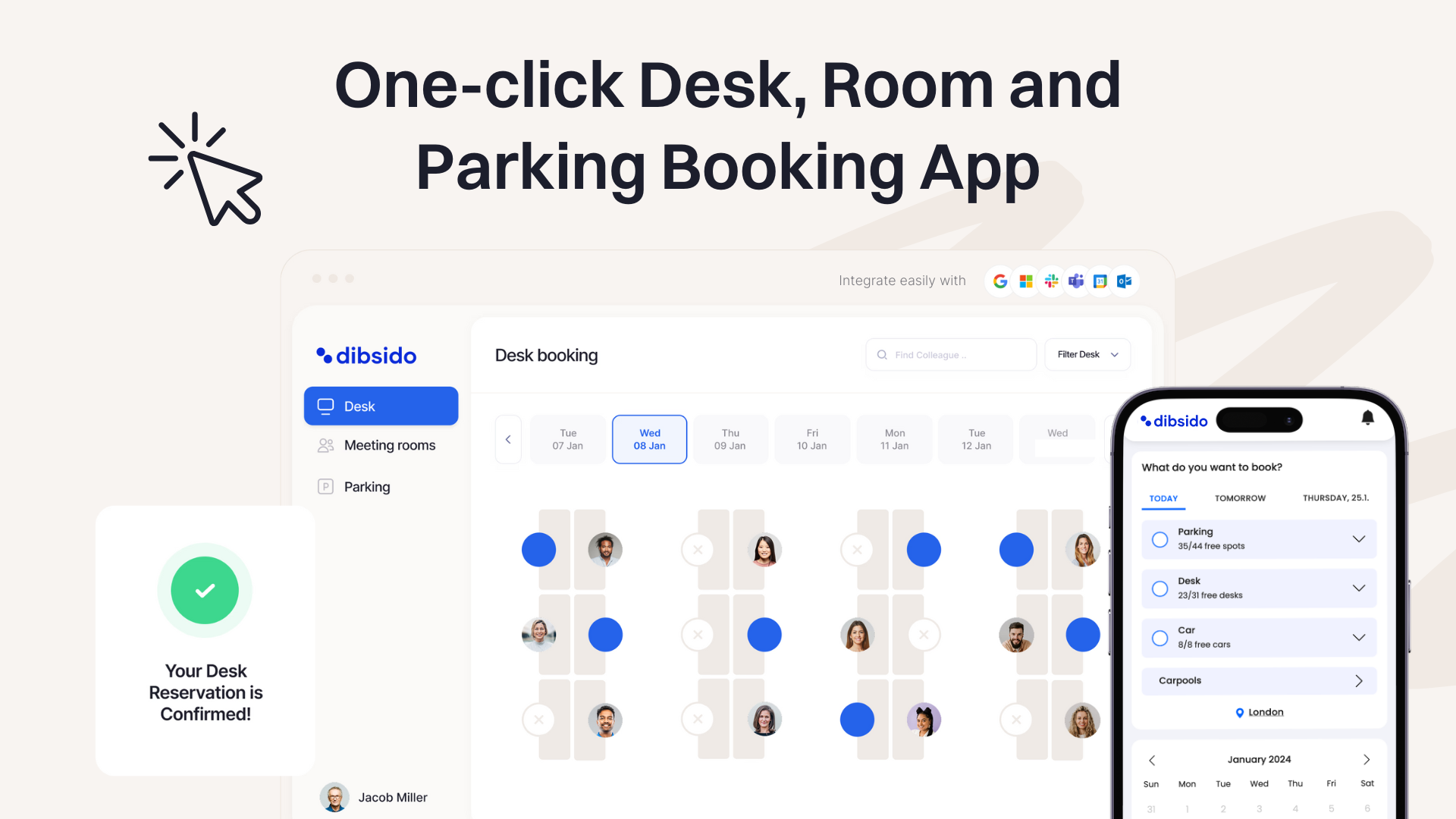 Extremely easy and intuitive method of booking workplaces and parking spaces