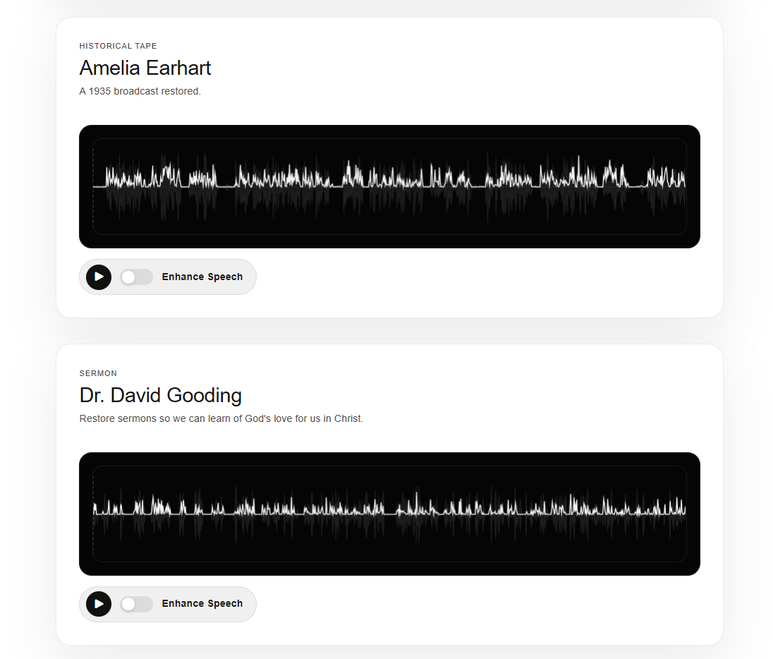 A new standard in speech quality. Transform your voice recording to studio quality with our web application or integrate speech clarity into your product with our AI Speech Enhancement API and SDK in real-time and on-demand.