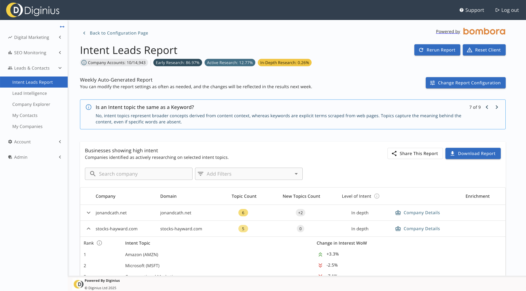 • Identify high-intent leads actively searching for your solutions using Bombora-powered B2B intent data