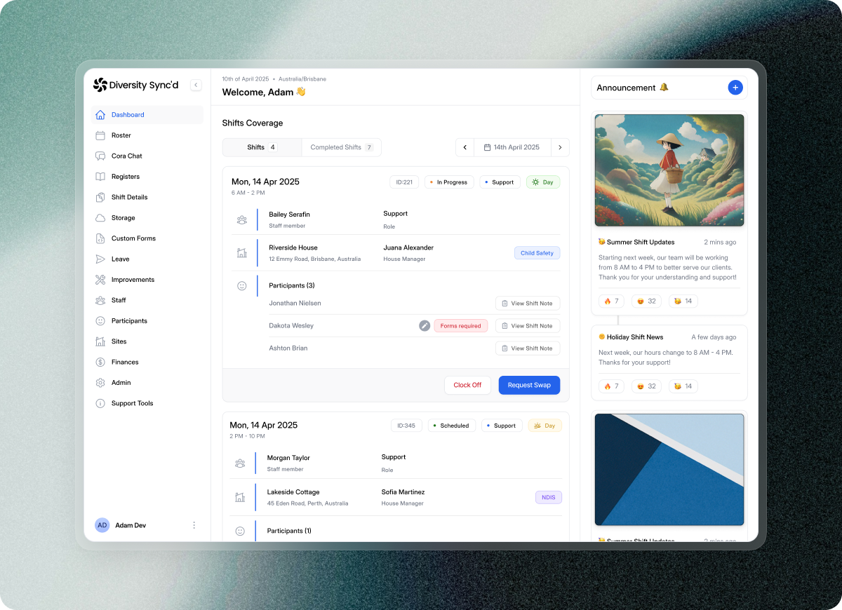 The most helpful thing about Diversity Sync’d is that it synchronises all client, staff, and compliance information into a single system, and the upside is safer care, stronger governance, better decisions, and a more efficient organisation Review collected by and hosted on G2.com.