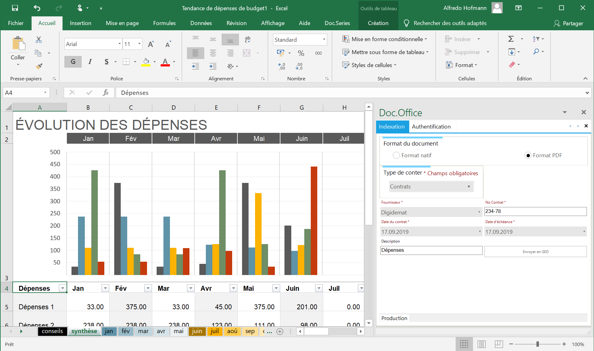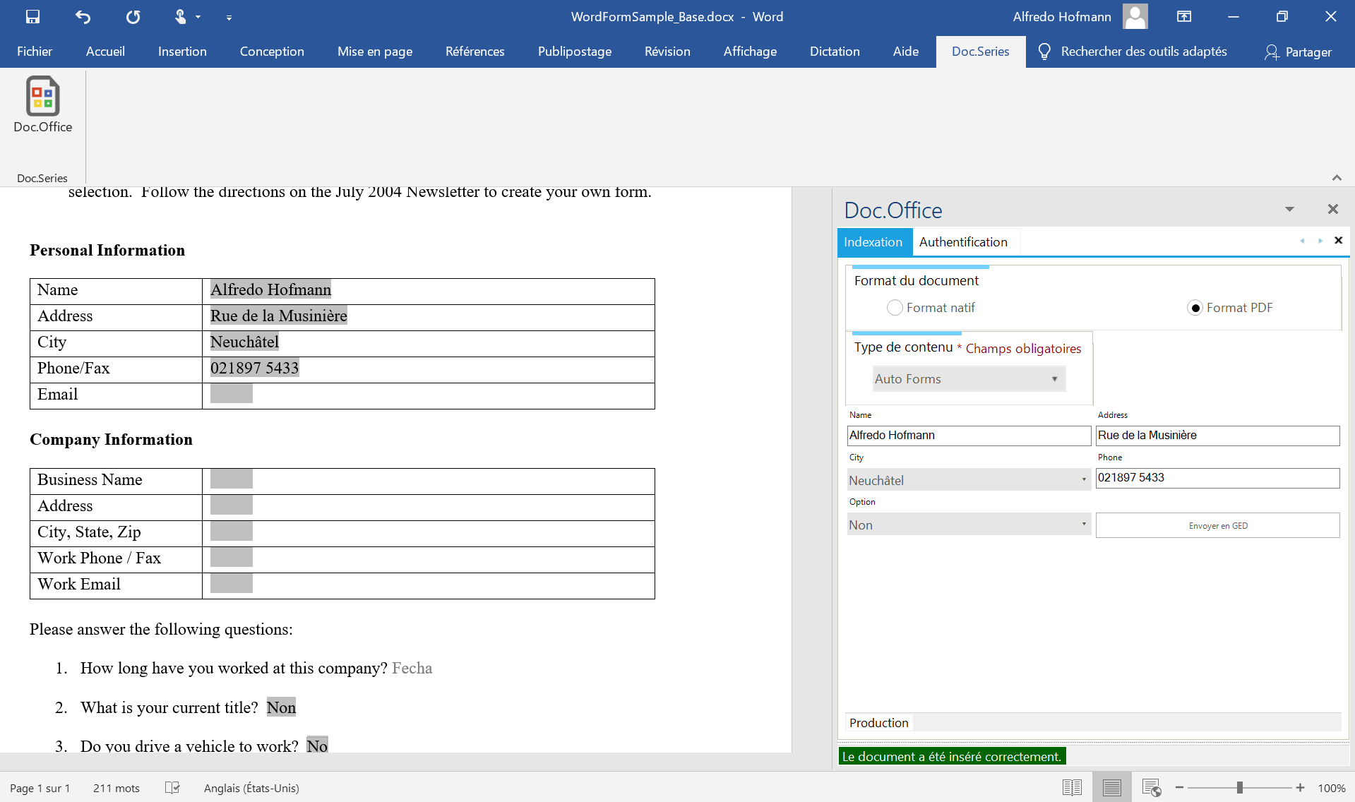 Doc.Office is a powerful tool adapted to the most demanding. The solution works at the production level and offers unmatched scalability in today's market. The software allows from your applications (Word, Excel, PowerPoint, Outlook, the office or the Windows file system) to convert the files to PDF or leave them in their original format, integrate and transform the attached files for Outlook, classifying and indexing them according to their wishes.