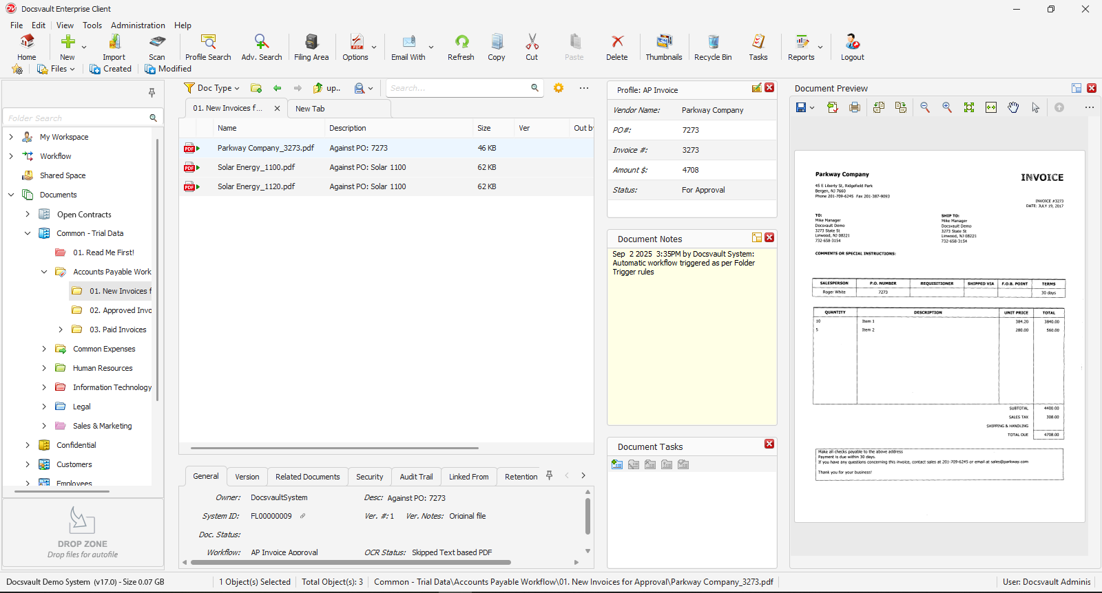 Docsvault has all of the standard document management features, as well as all the tools to convert to a completely paperless office that can be easily accessed remotely. Features such as scanning, OCR, version control, PDF annotations, approval processing, and secure access control make it easier to manage critical business records. It provides tools for intelligent data capture through AI, online collaboration, sharing and collecting data, and requesting signatures while centralizing critical documents and protecting them from loss, or insecure unauthorized access.