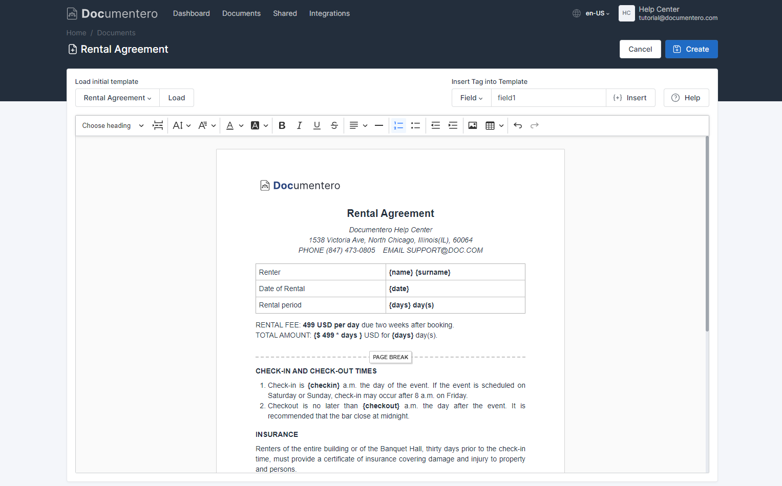 It was not difficult to figure out how to prepare and set up the website form. One of the most attractive parts to me is that I upload the Word document in the form I want it--the fonts, the spacing, the logos, etc. And Documentero basically fills in that Word document with the various clauses I have indicated are necessary and gives it back to me in a Word document--or I can have it done in a PDF if I know I won't have any edits. The result is exactly what you would have if you went through the process of using a template or duplicating a document to prepare the letter--except it takes a tiny fraction of the time, and you don't miss anything because you have to check boxes to include or exclude possibly relevant provisions.