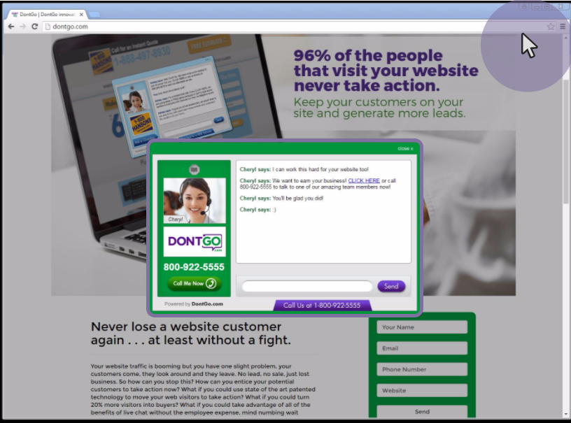 It is a great way to try and capture additional customers that might have just left the site. Not only does it pop up as you go to exit the site, but the chat feature also answers questions for someone who is still hesitant. We not only implemented it into all of our pages on our website but we recently added it to our pay per click pages as well to help generate additional leads and potential revenue. We have not only received the leads, but we have also received a bunch of phone calls as well. They are able to track all of these for you and give you a detailed weekly report of the different clicks, form fills and phone calls over the 2 minute mark. Review collected by and hosted on G2.com.