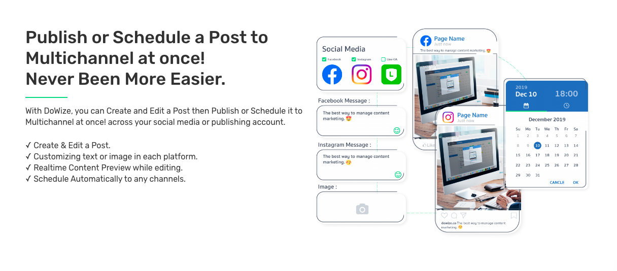 DoWize Demo - Publish or Schedule a Post to Multichannel at once! Never Been More Easier.