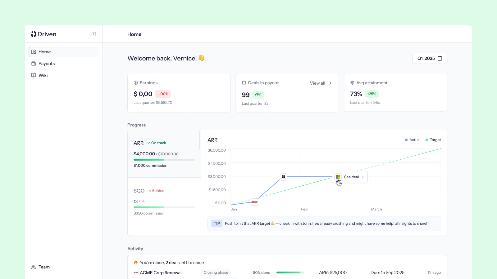 Sales reps also benefit from the platform, with real-time visibility into their performance, future payouts, and complete transparency.