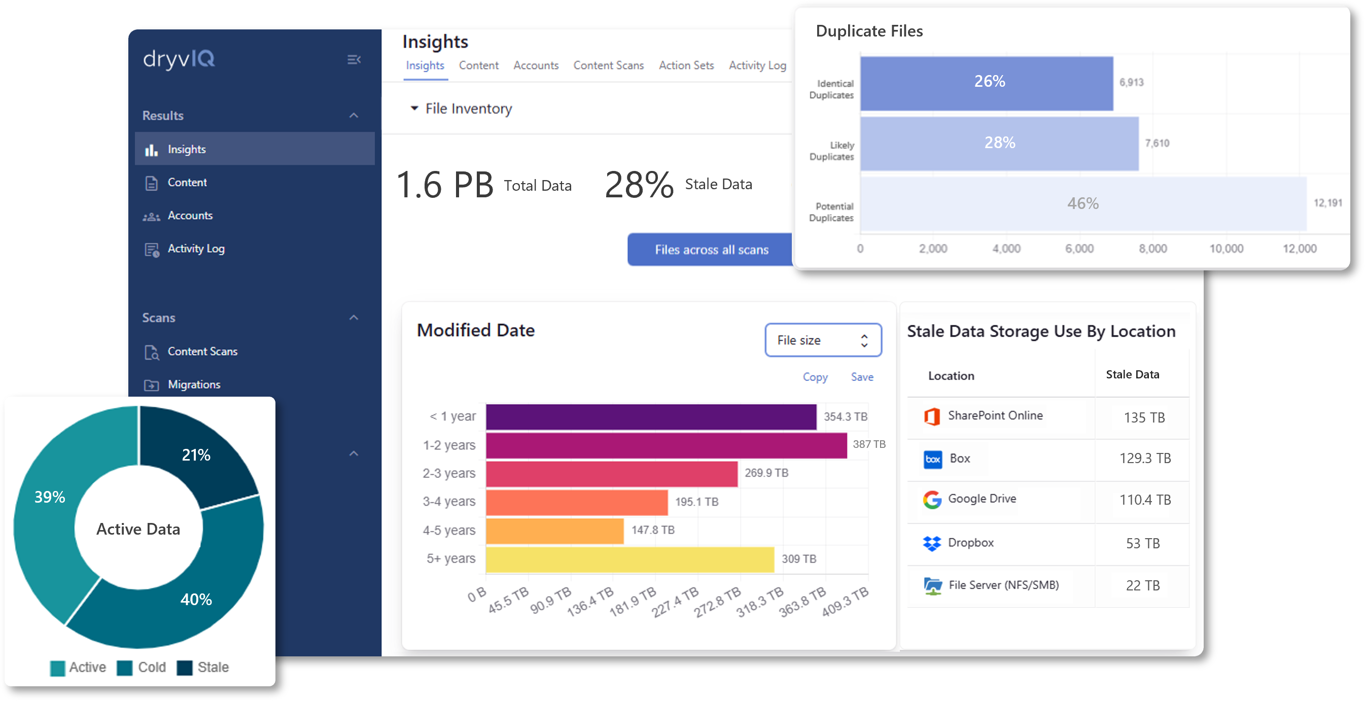 DryvIQ is the unstructured data management company. Leveraging the speed and scale of our patented platform, organizations can continuously classify, manage, and migrate their unstructured data across cloud and on-premises systems. More than 1,100 organizations worldwide trust DryvIQ to fuel their enterprise data management journey, resulting in increased efficiencies, decreased risk, and reduced costs.