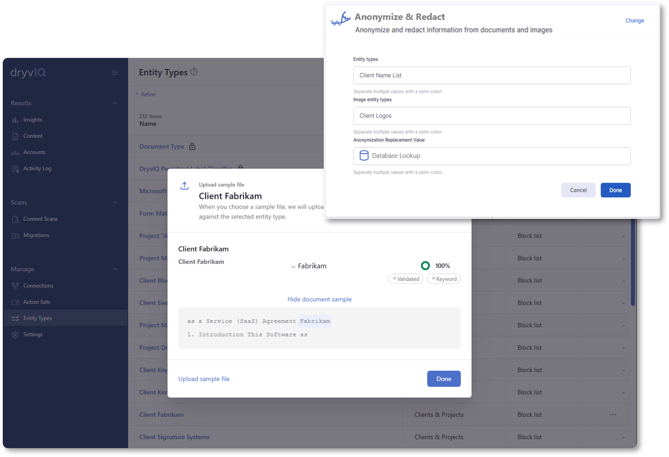 DryvIQ applies redaction, encryption, and anonymization at the content level to protect sensitive information while preparing data for internal use, sharing, or AI initiatives. Whether safeguarding IP or ensuring privacy compliance, DryvIQ removes the risks associated with raw, unfiltered content—allowing your business to unblock AI implementations and move faster with confidence.