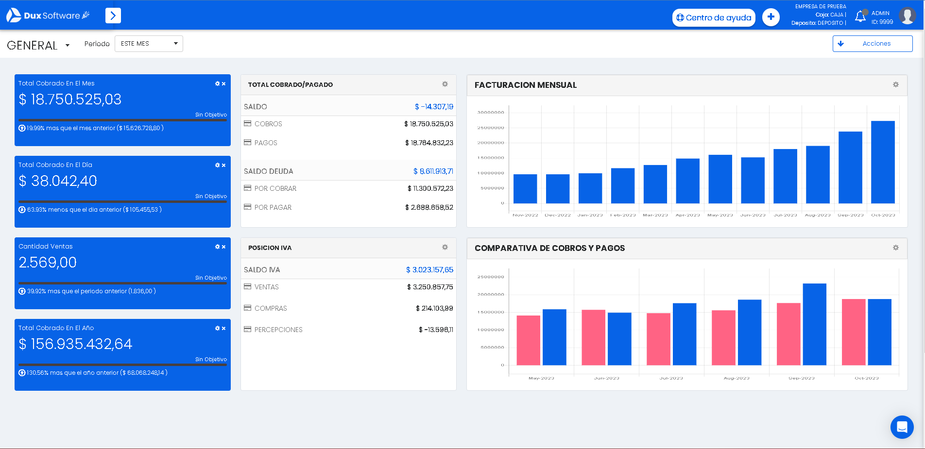 Con Dux Software ERP, puedes simplificar la facturación, gestionar tus ventas de manera efectiva, controlar la tesorería, administrar las compras, y supervisar tus inventarios con facilidad. Nuestra plataforma te permite administrar múltiples depósitos de manera intuitiva, brindándote el control total sobre tus recursos.