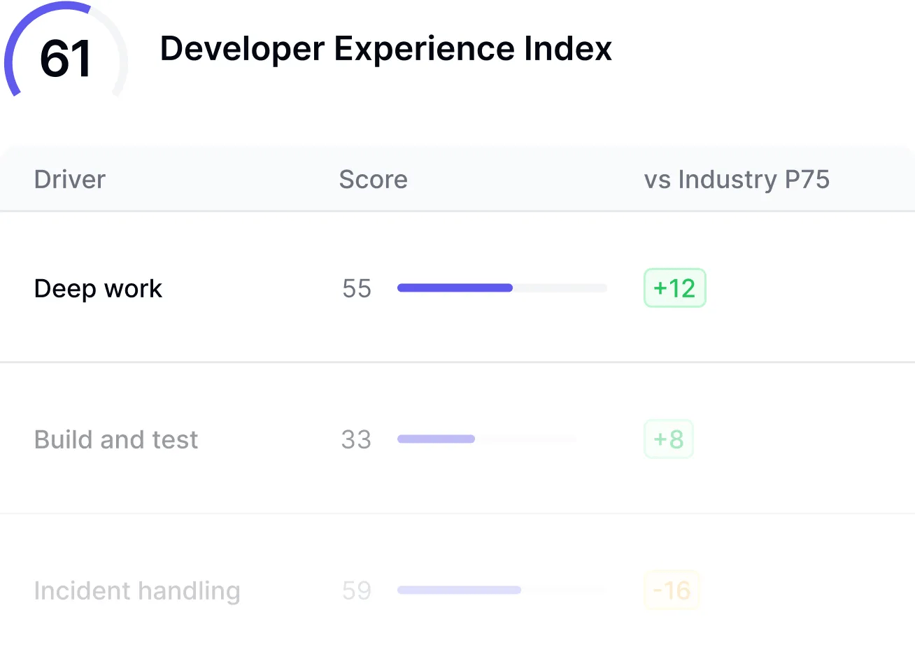 DX’s Industry Benchmarking allows organizations to compare their engineering performance against the world’s largest database of developer experience metrics, segmented by industry and role. Using Direct Benchmarking, leaders can see exactly how they stack up against peers to identify competitive...