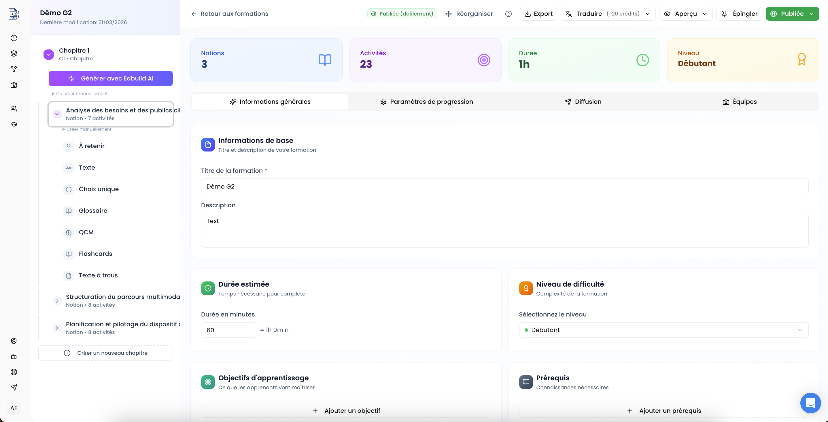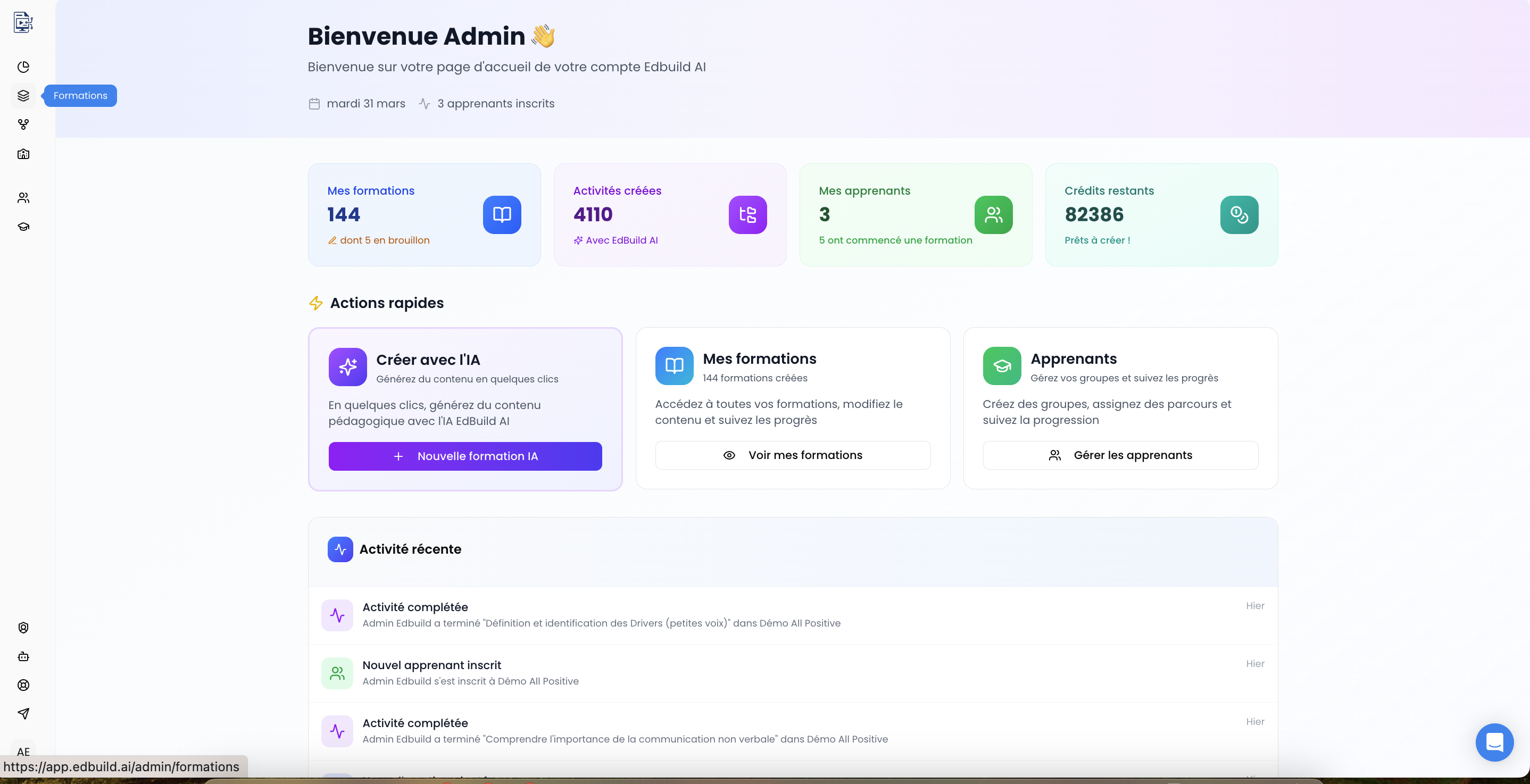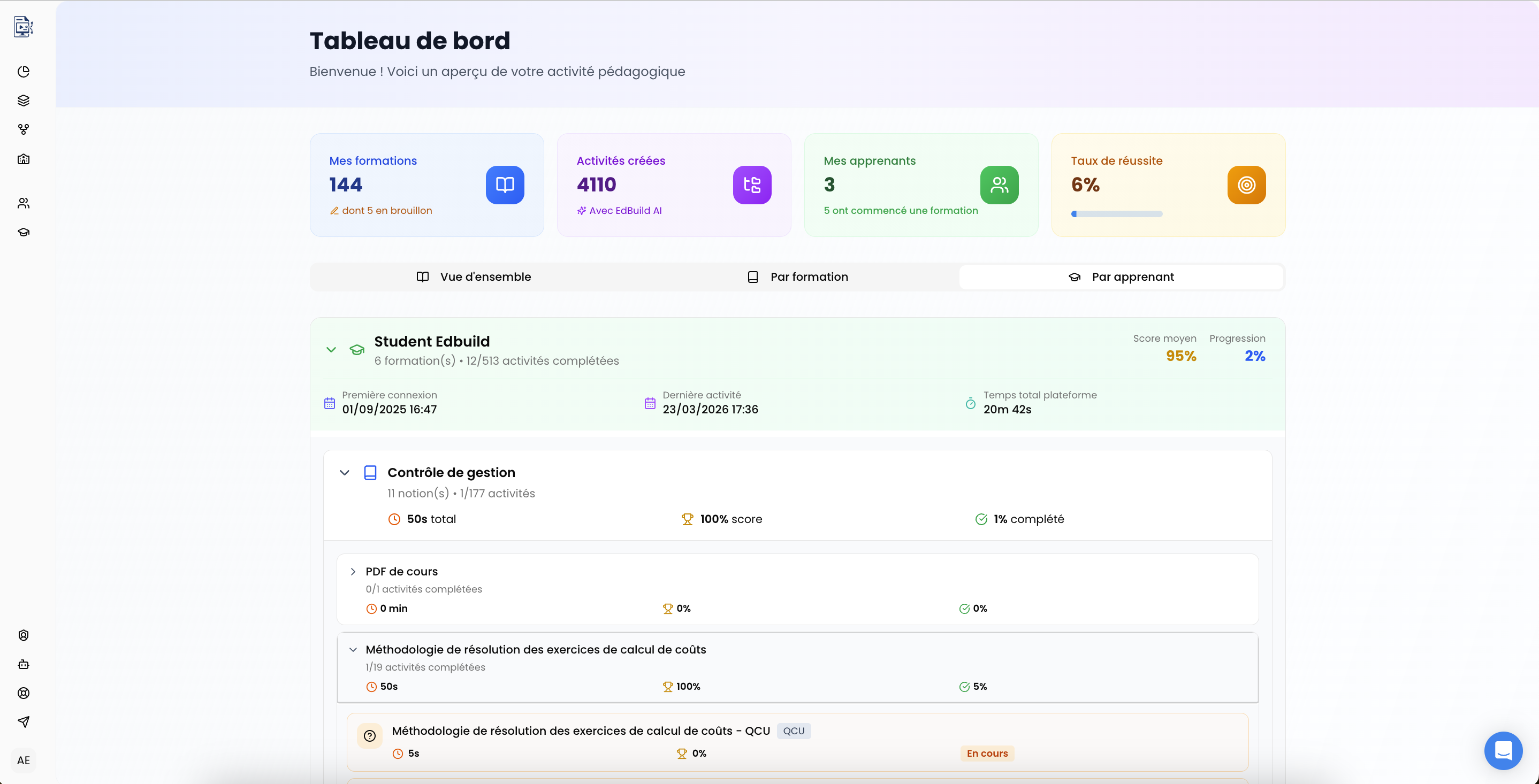 Merci beaucoup Benjamin pour ce retour détaillé 🙏C'est exactement l'usage pour lequel nous avons pensé EdBuild AI : permettre aux équipes L&D de déployer des formations à l'échelle d'un réseau — produits, process, onboarding — sans dépendre d'un prestataire externe à chaque mise à jour. Ravis de lire que le setup en moins de 15 minutes et la combinaison modules SCORM + vidéos avatar IA vous font gagner autant de temps, et que les 80 % de réduction du temps de production sont au rendez-vous côté franchise.Votre remarque sur la personnalisation white-label du portail apprenant est parfaitement entendue, et c'est un axe sur lequel nous travaillons activement. Nous enrichissons progressivement les options de branding (couleurs, typographies, logos, domaine personnalisé, composants du portail) pour permettre un alignement complet avec les chartes graphiques de nos clients, en particulier ceux qui, comme vous, opèrent en réseau multi-site. Je reviens vers vous en direct pour recueillir vos besoins précis et les intégrer à notre roadmap — votre cas d'usage franchise est exactement le type d'input qui nous aide à prioriser.Merci encore pour votre confiance et pour avoir pris le temps de partager votre expérience.