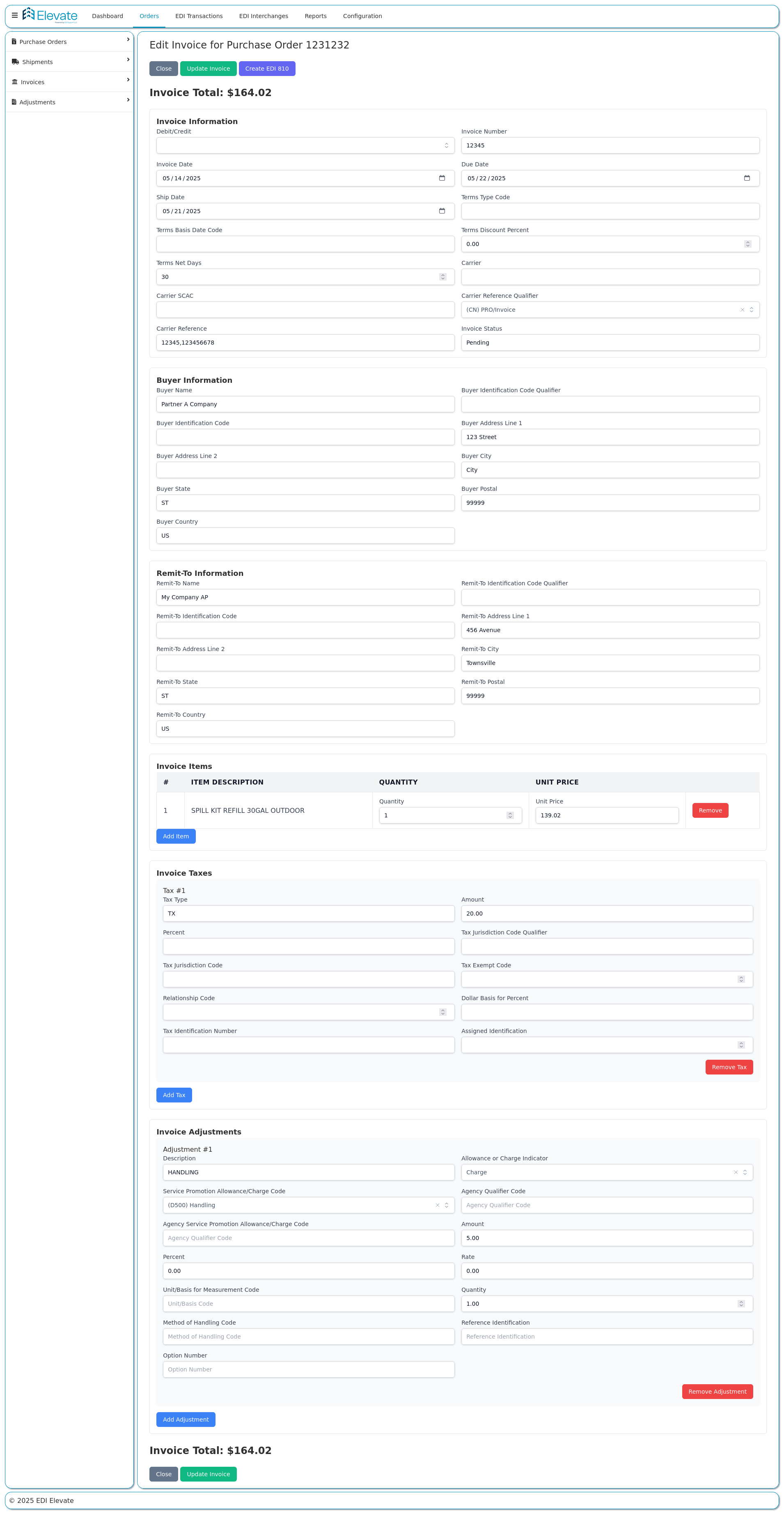 The Purchase Order Detail (EDI 850) screen gives a complete view of each order, including line items, quantities, pricing, and partner requirements. SMBs can accept or reject orders, generate shipments, and send invoices directly from this view. With Elevate, order processing is faster, clearer,...