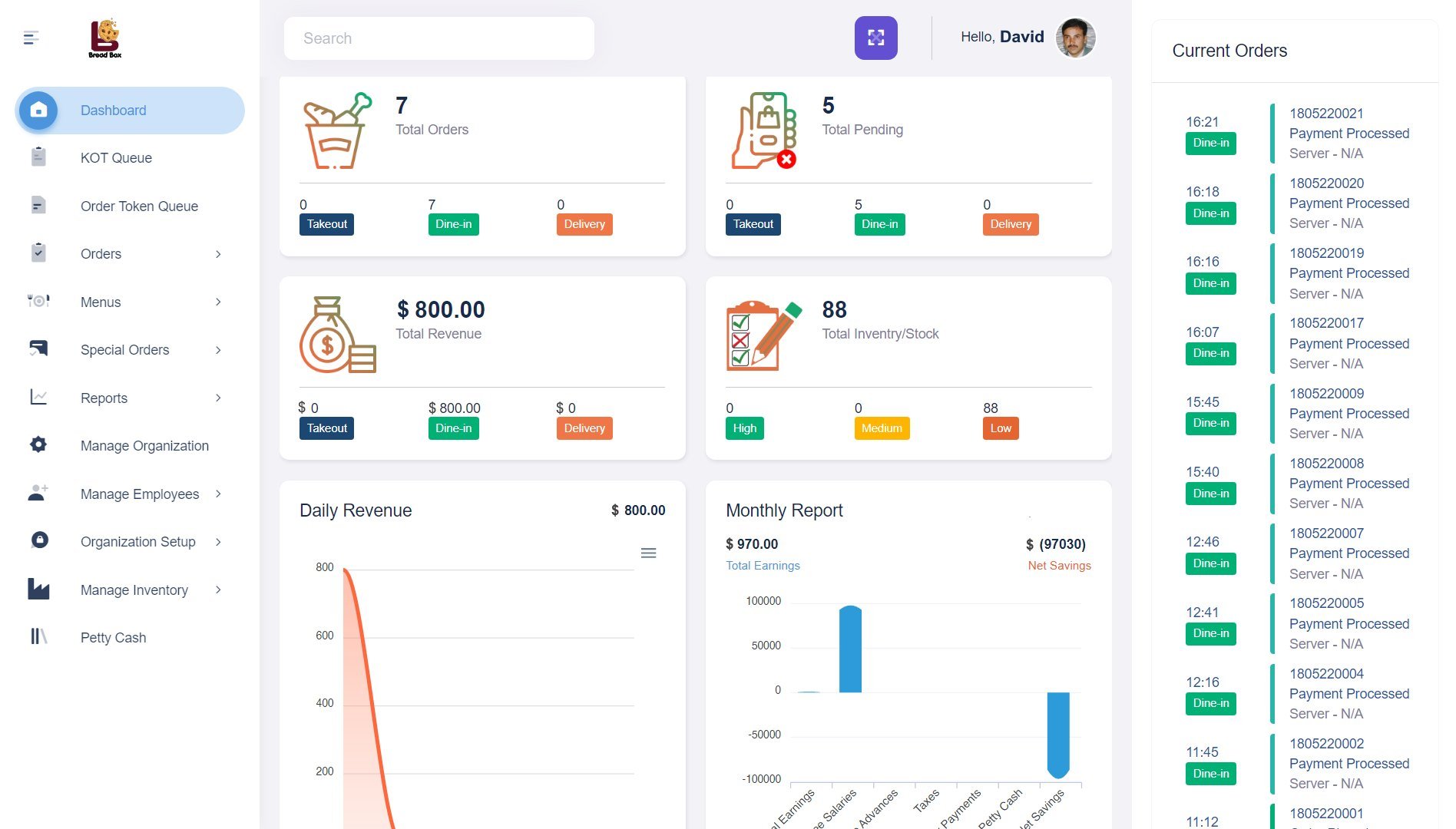 - Online Ordering Integration: Supports in-house, pickup, and delivery orders, expanding sales channels and improving customer convenience.