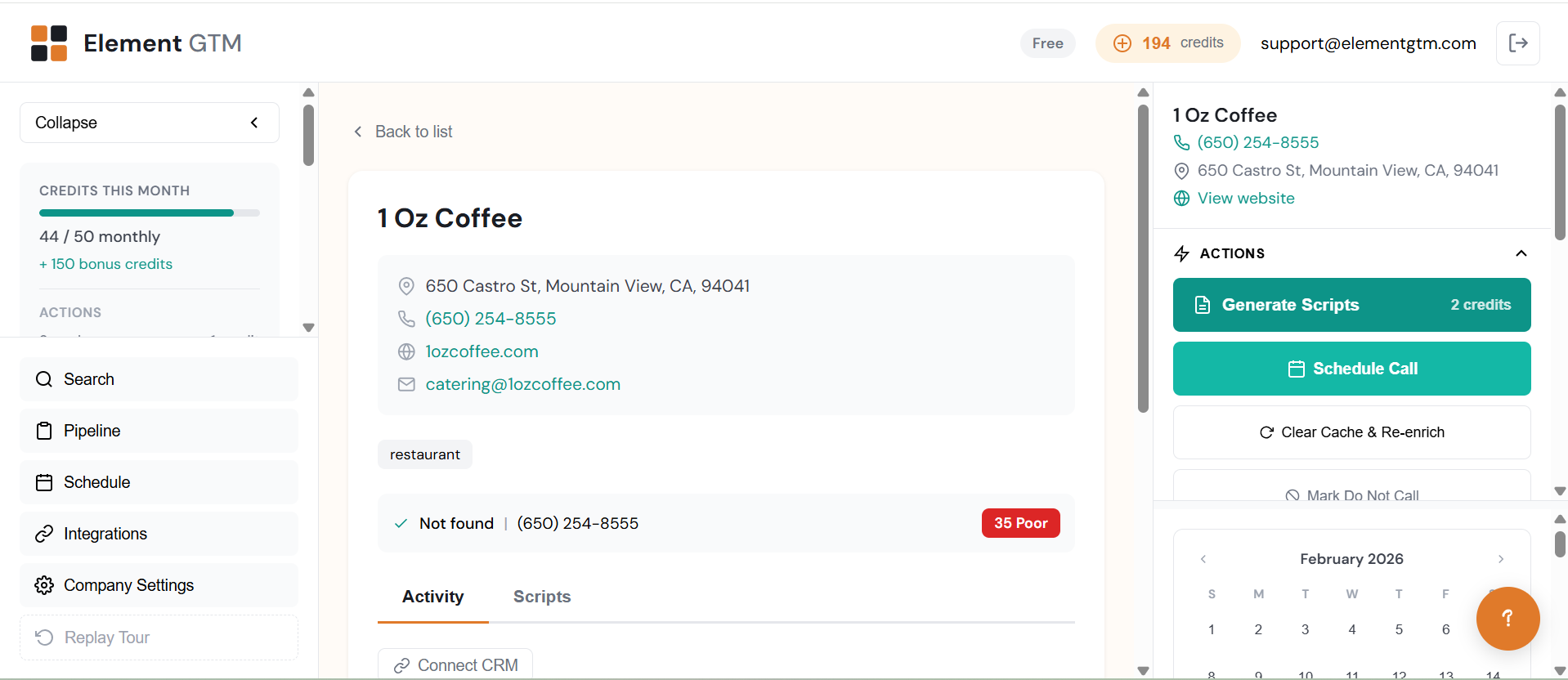 Pricing provided by Element GTM.