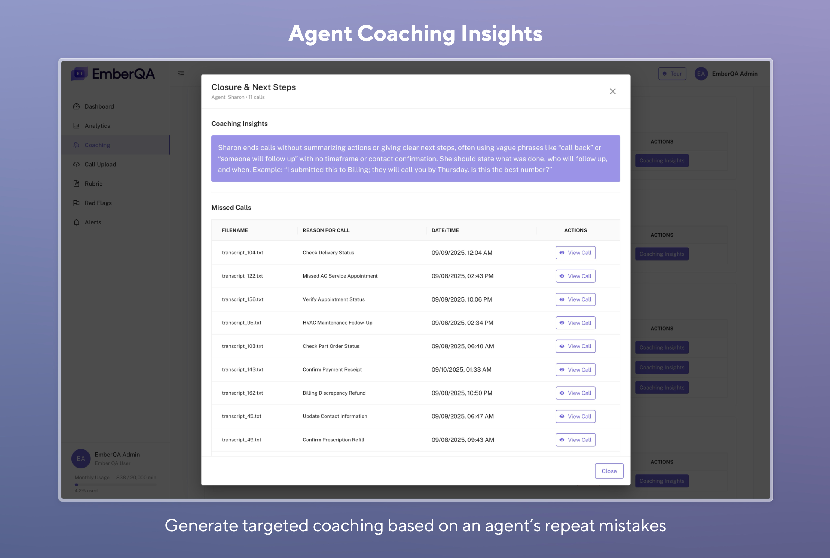 I'd say my favorite feature in EmberQA is the Red Flag alerts that you can configure. The coolest part is you don't even have to be super specific when setting them up and their AI is able to detect the issues you are looking for. For example, I use EmberQA to help train and monitor my voice agents I deploy for businesses and all I have to do is type in "Customer Frustration" and somehow it is able to detect customers that are getting annoyed when they call. Review collected by and hosted on G2.com.