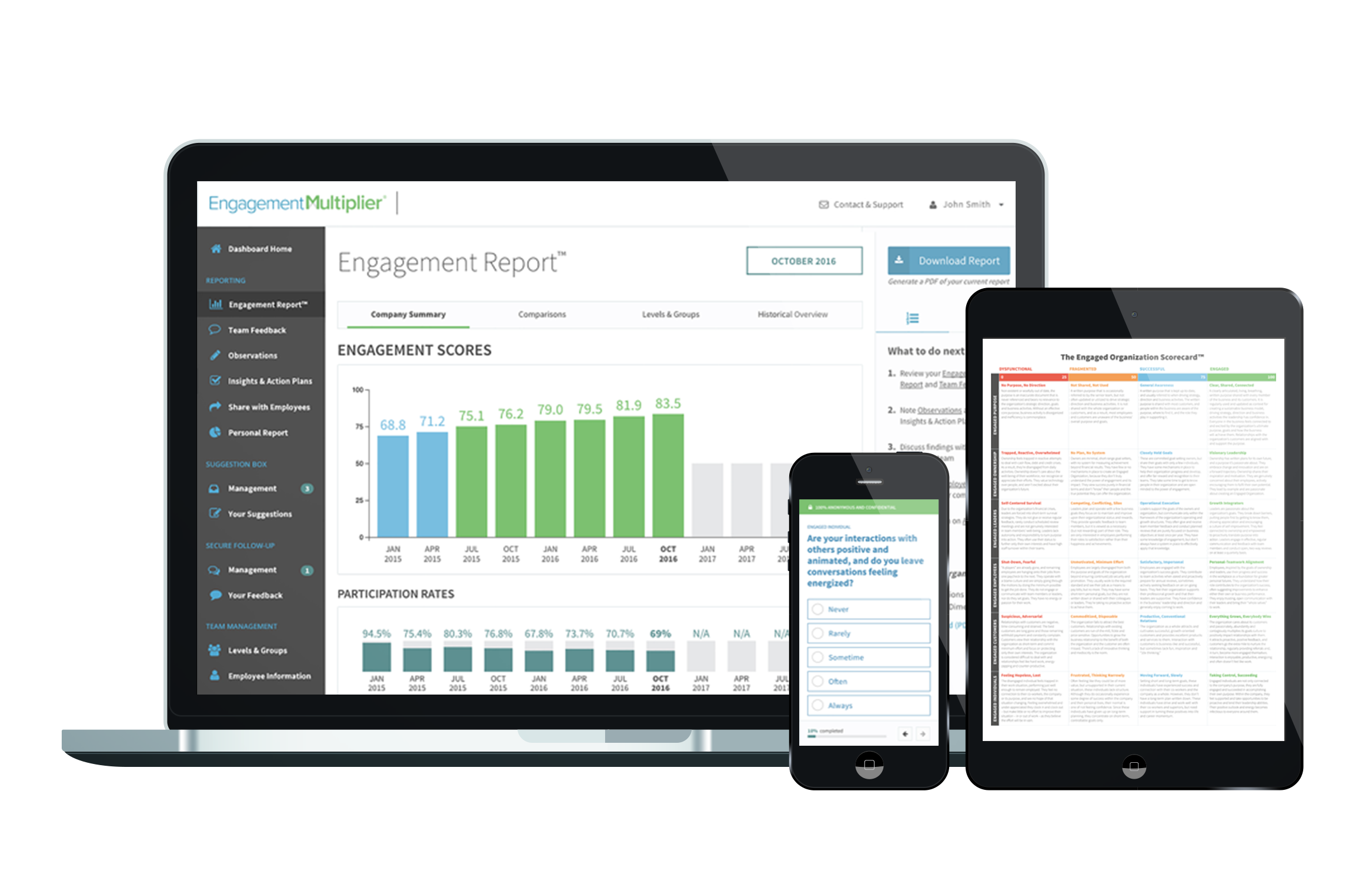 Engagement Multiplier is Brilliant for me to use as a business adviser to my clients. We use the tool which is all online and cloud based to simply take the temperature of staff in a company and find out where there engagement levels are and collect ideas to develop the company from staff feedback which makes it much easier to build improvements across the business and put it into the development plan. The Graphical interface makes it much easier to see quickly and easily where the hotspots are and what we need to focus on to improve engagement in the organisation. Review collected by and hosted on G2.com.