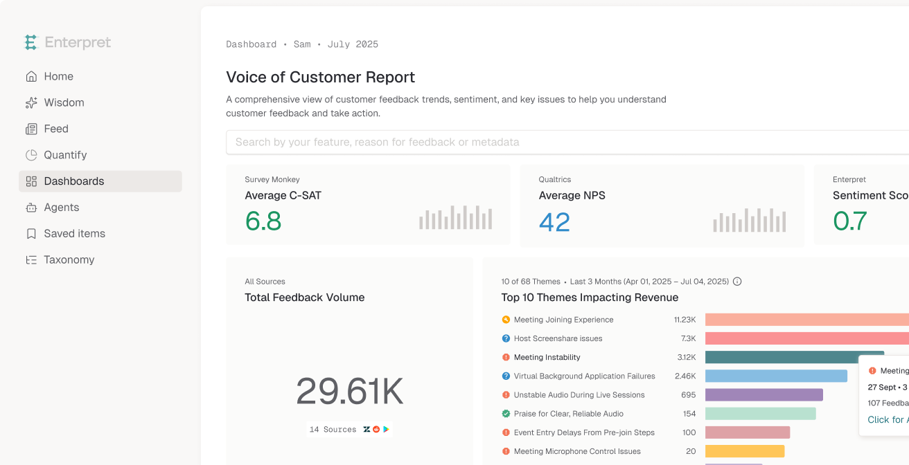 Once a record is sent to Enterpret, it won’t update if there are later changes to the original feedback or conversation. One example we ran into with our webhook integration: we sent a customer’s conversation history into Enterpret, and then the conversation continued afterward, but the record in Enterpret didn’t reflect those new messages or updates even if we re-sent the webhooks with the full conversation including the new messages since the initial send. Review collected by and hosted on G2.com.