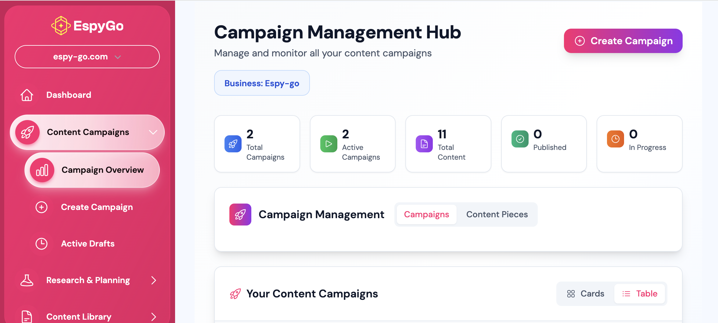 By combining strategic clarity with AI execution, EspyGo helps you rank faster, stand out in saturated markets, and create content that compounds — without needing a big team.