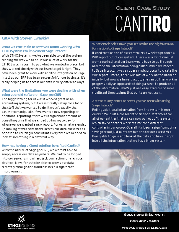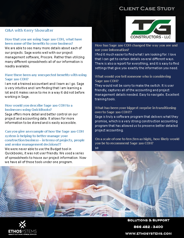 I would definitely recommend ETHOSystems, especially working with Robyn Brimhall, Certified Consultant. Their team is knowledgeable, responsive, and committed to solving complex SAGE 300 CRE issues. Review collected by and hosted on G2.com.